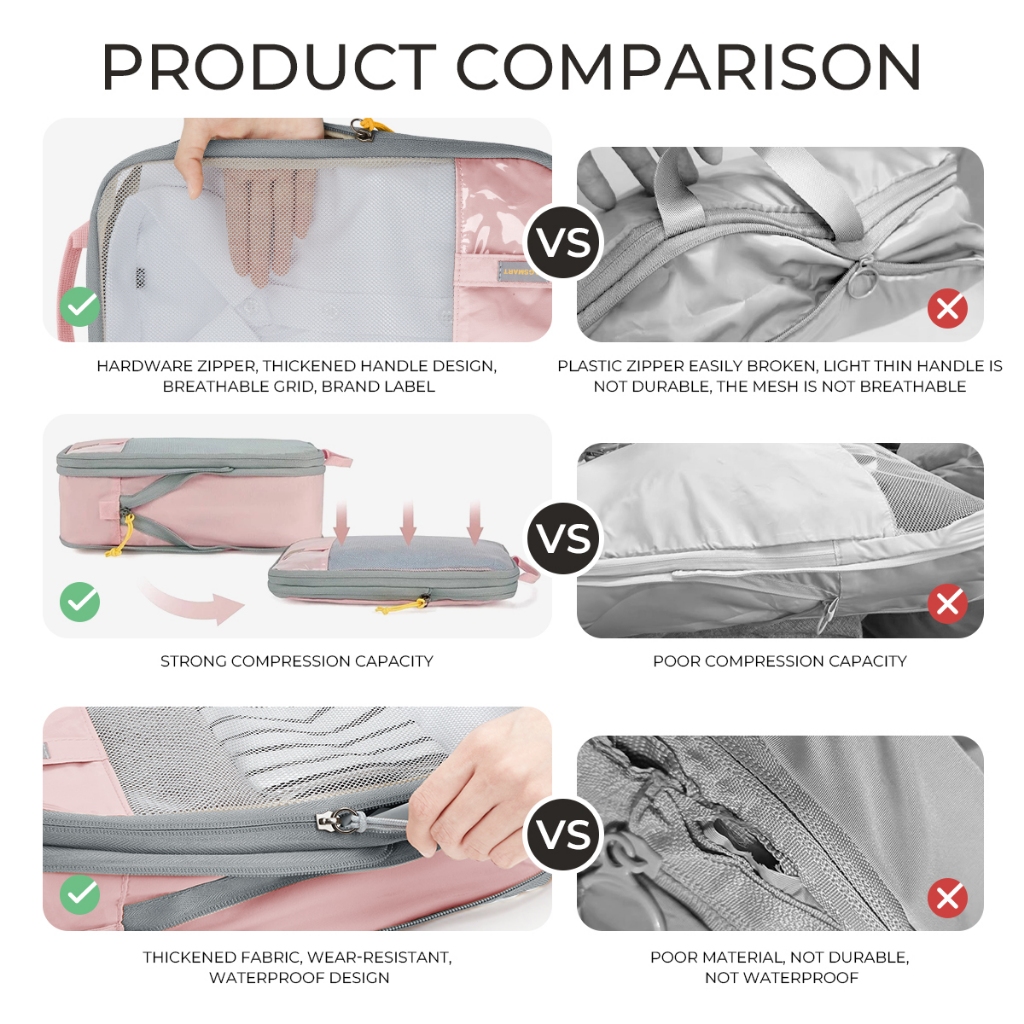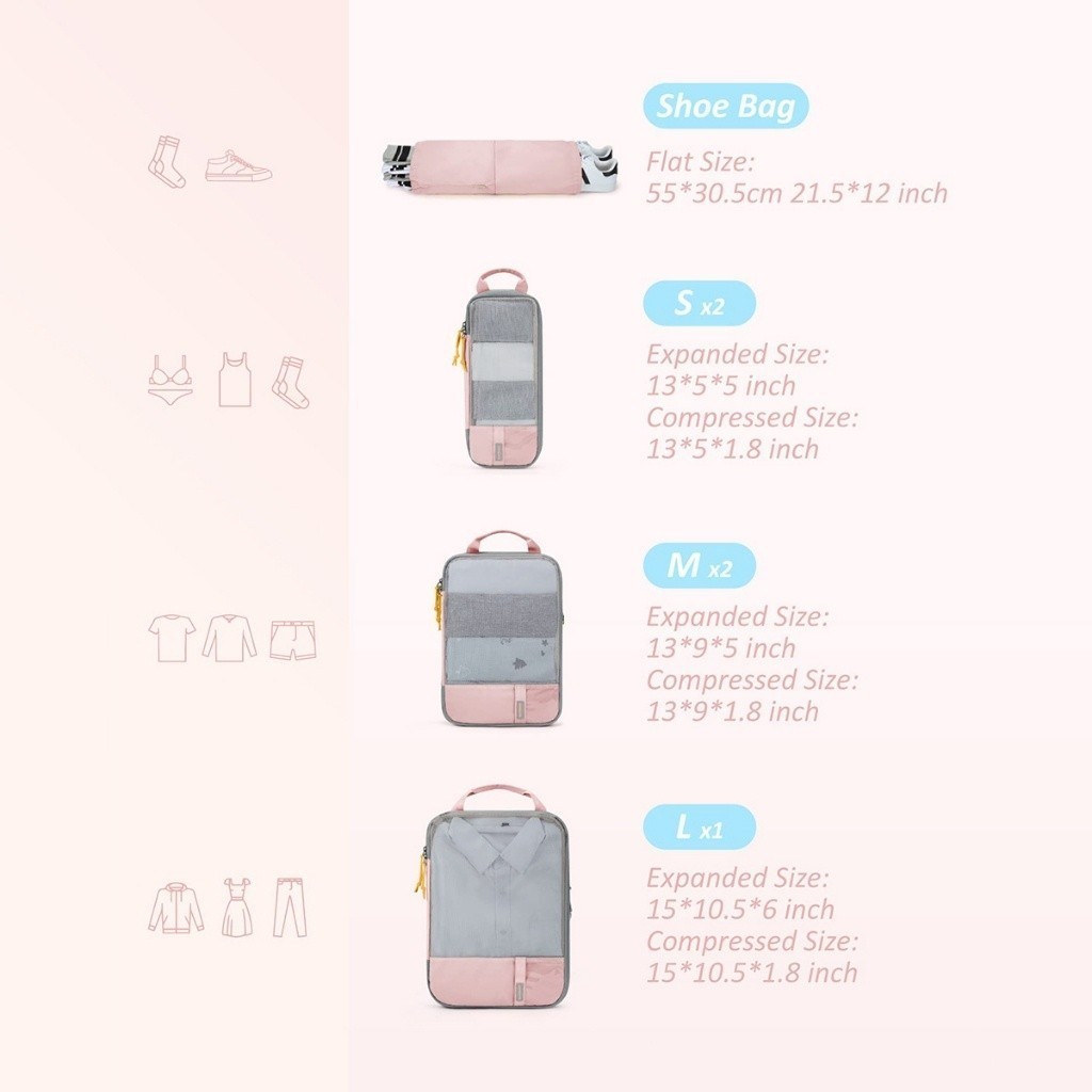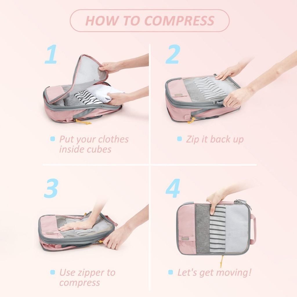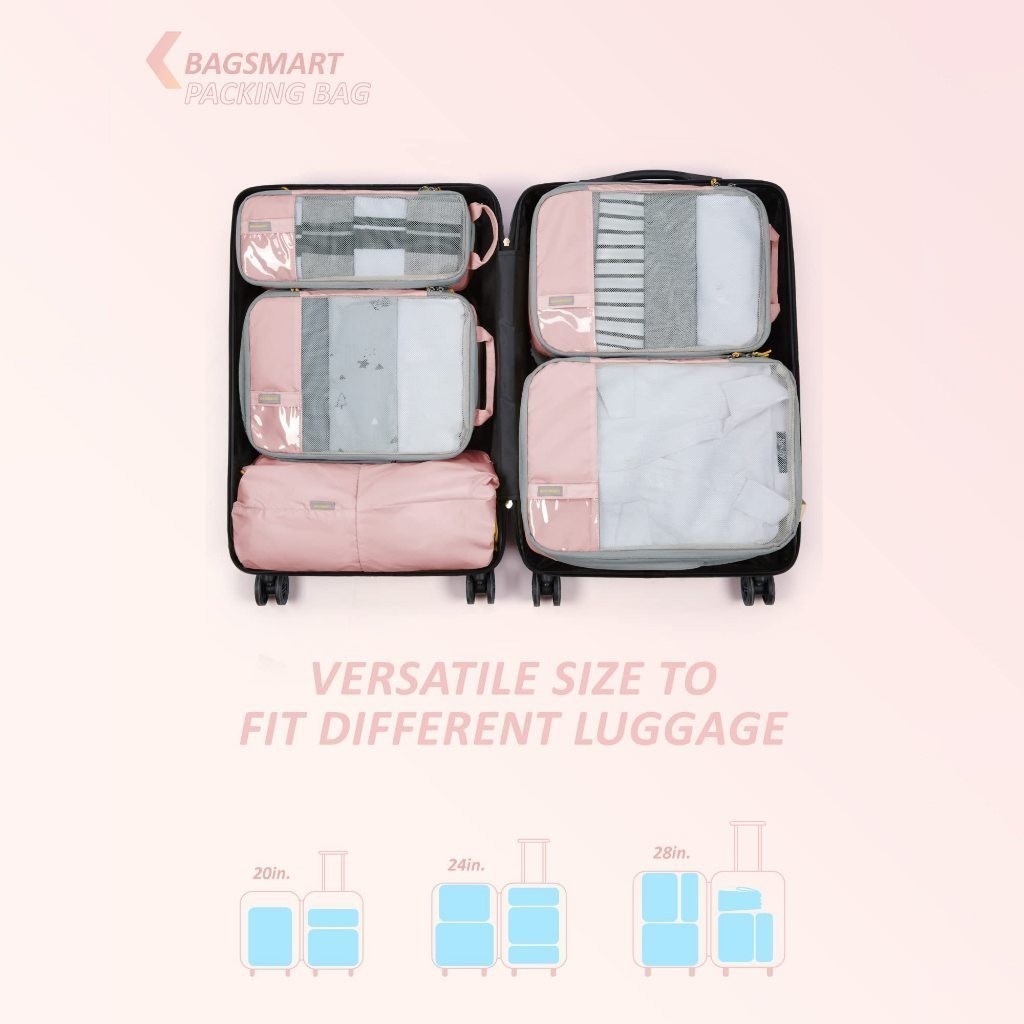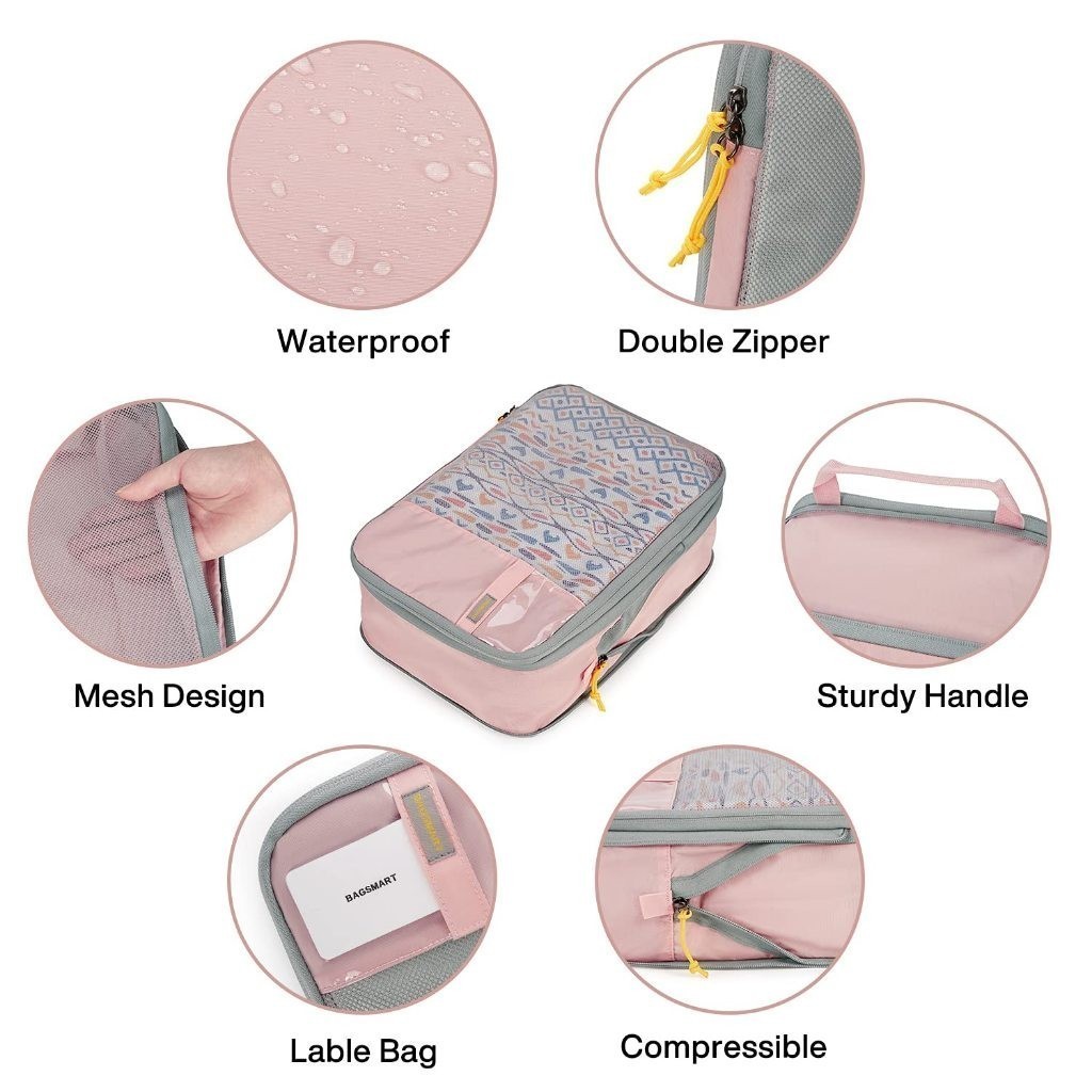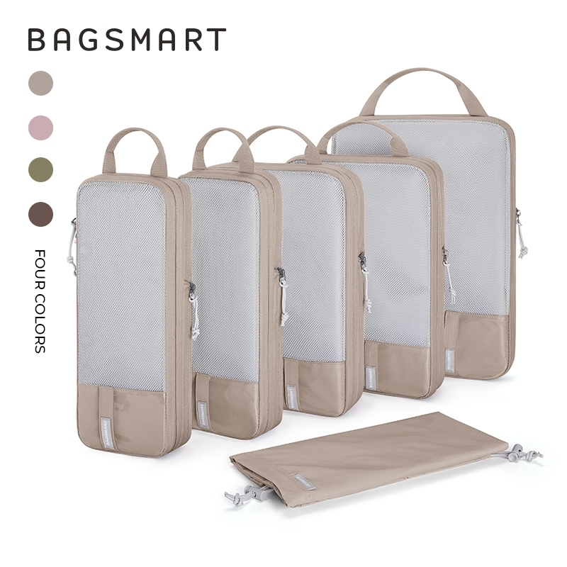 BAGSMART 6 Set Compression Packing Cubes Durable Luggage Organizer Lightweight Travel Essentials