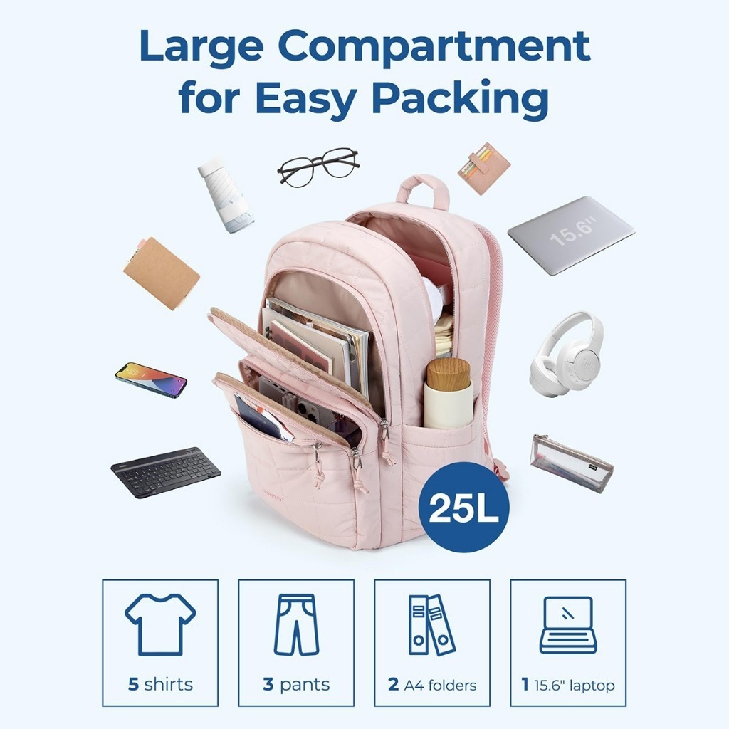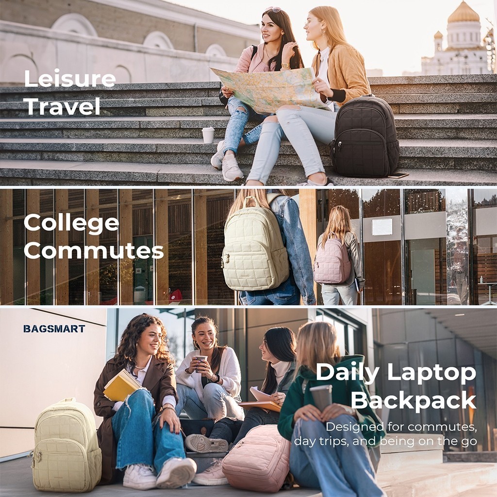 BAGSMART 15.6 inch Laptop Backpack Waterproof Quilted Travel Backpack Casual College Schoolbag
