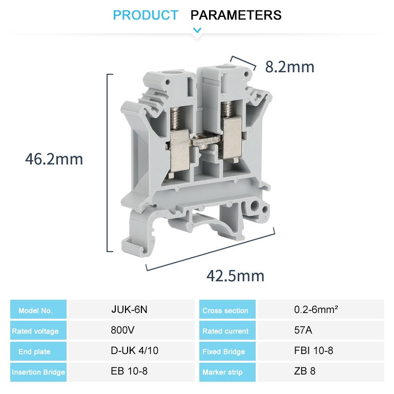 UK 6N DIN Rail Terminal Block Screw Connection 0.2-6mm² 24-8AWG Wire Connector Electrical UK6N