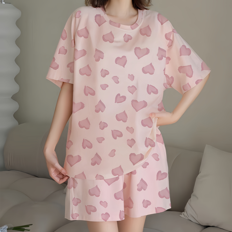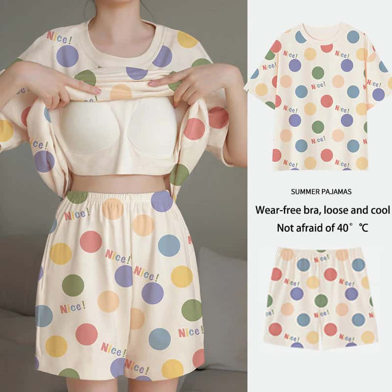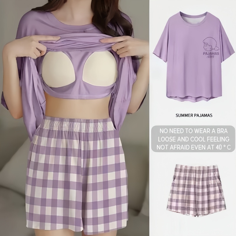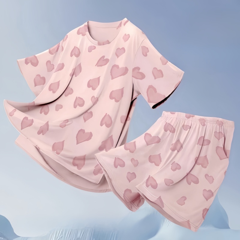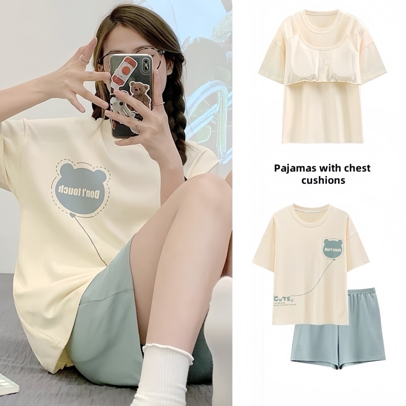 GD 2 pcs Pajamas for Women Summer Short-sleeved Shorts Cute Casual Cartoon plus size Women's suit