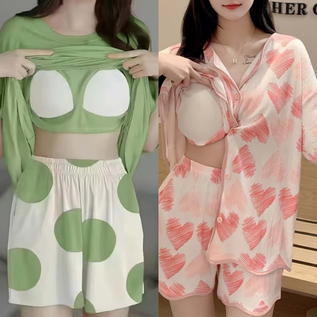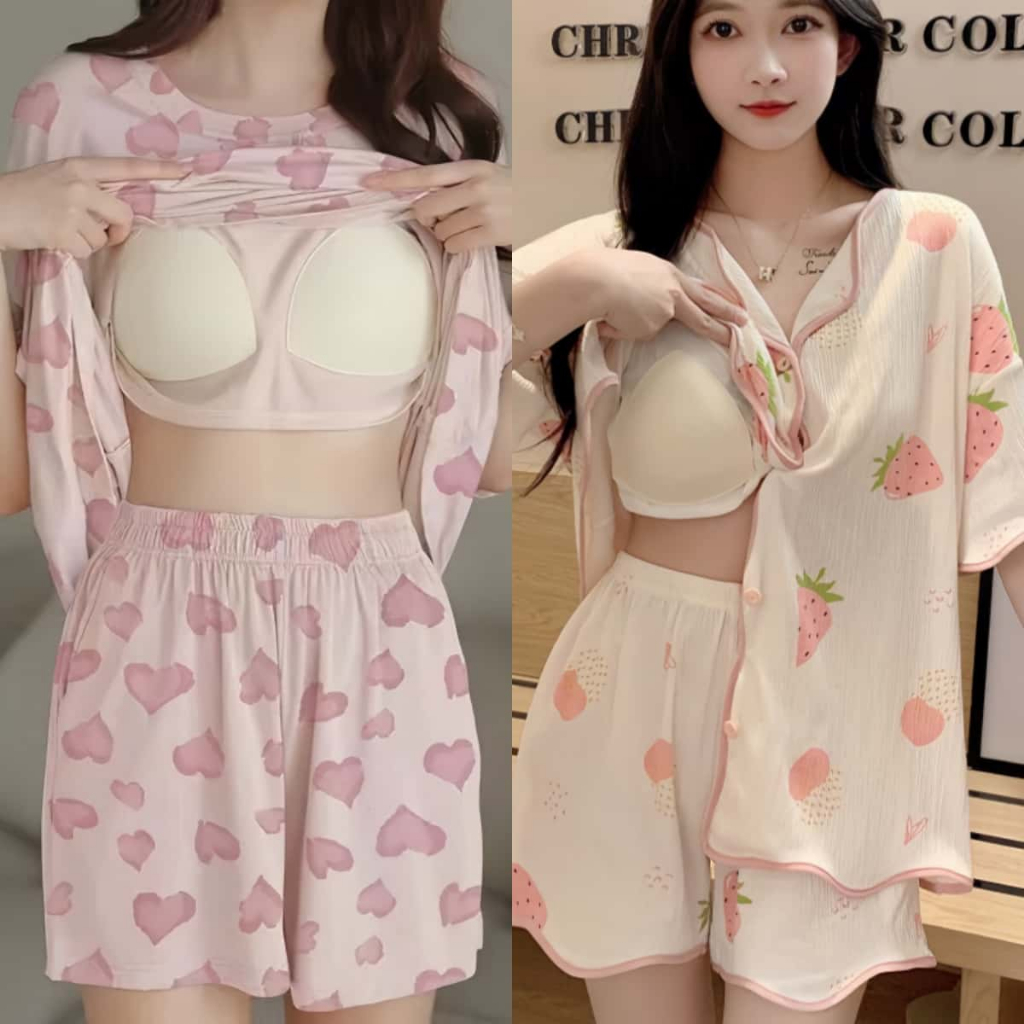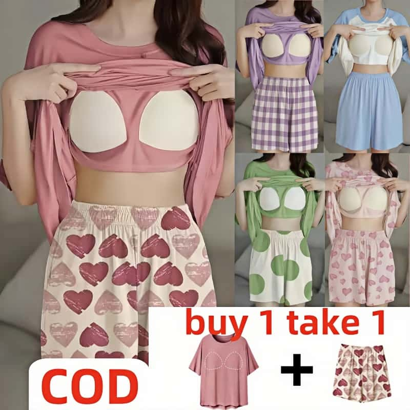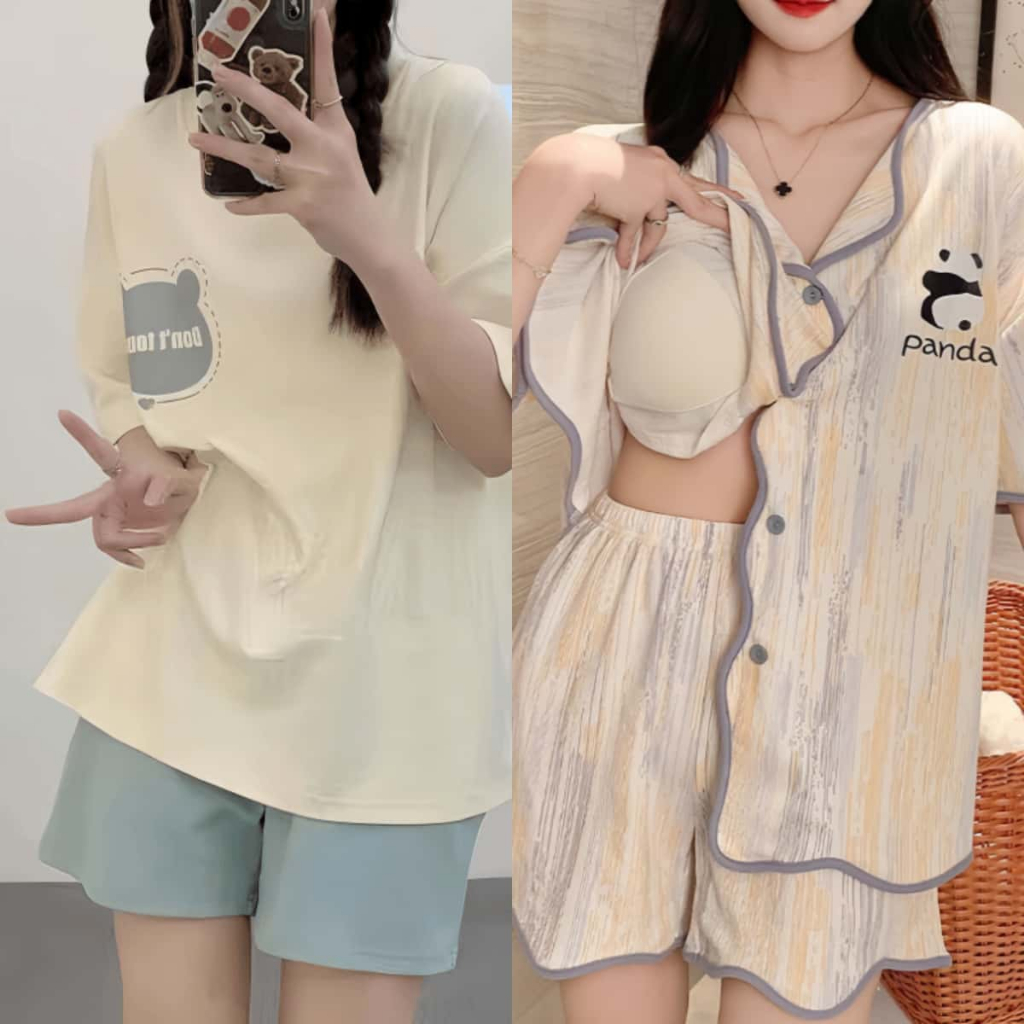 GD 2 pcs Pajamas for Women Summer Short-sleeved Shorts Cute Casual Cartoon plus size Women's suit