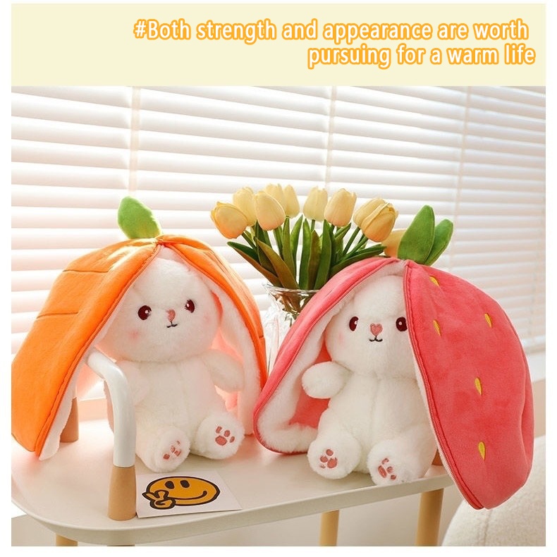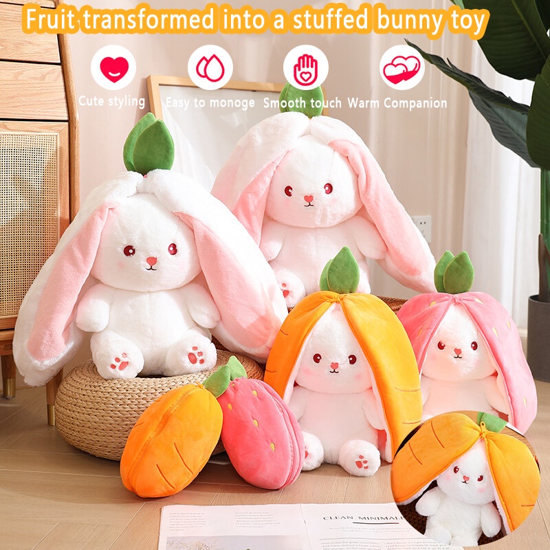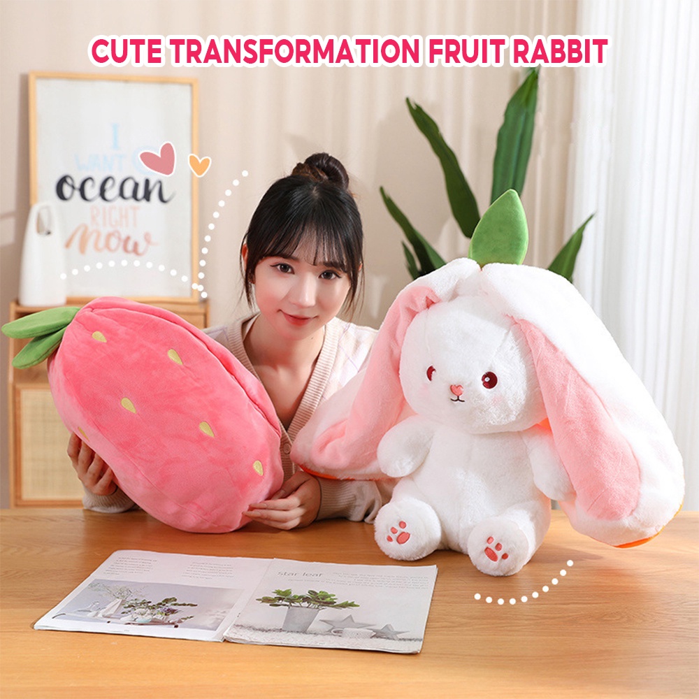 Cute Transformation Radish Rabbit Doll Big Ear Rabbit Pillow Doll Strawberry Rabbit Plush Toy Doll