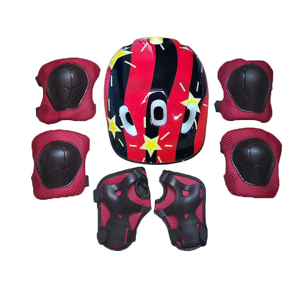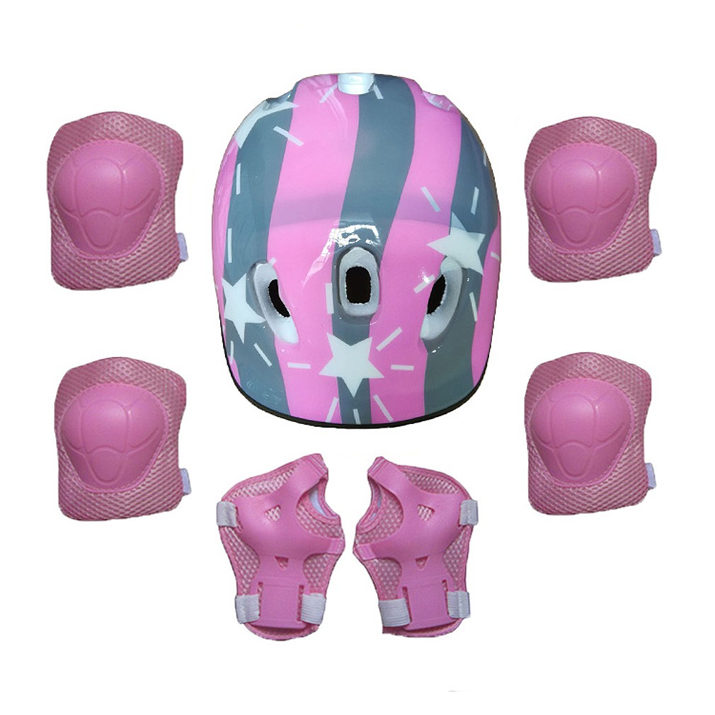 【Local Stock】 7PCS Boys and Girls Gear Safety Helmet Knee Elbow Pad Skating Bike Protective Set