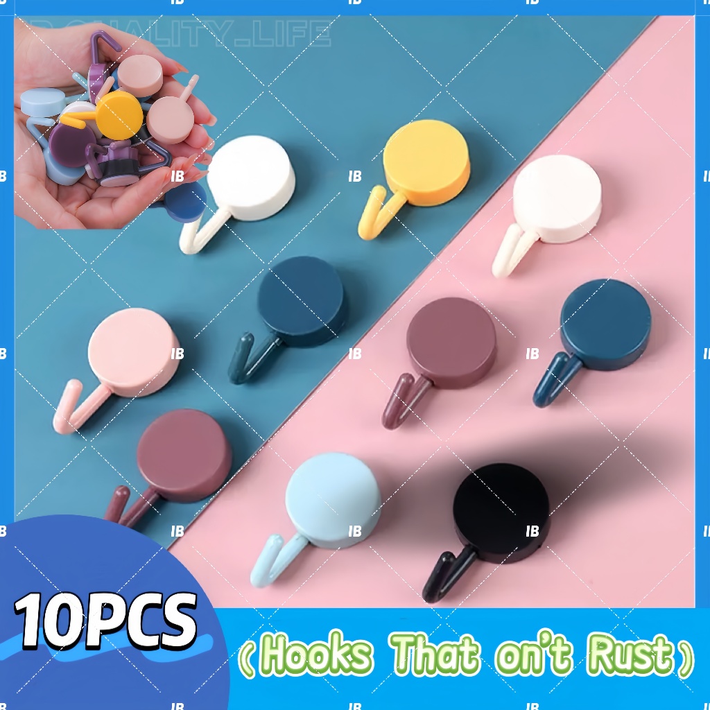 10Pcs Hook No Punching Key Hanger Wall Hook Kitchen Bathroom Organizers Adhesive Hooks For Hanging