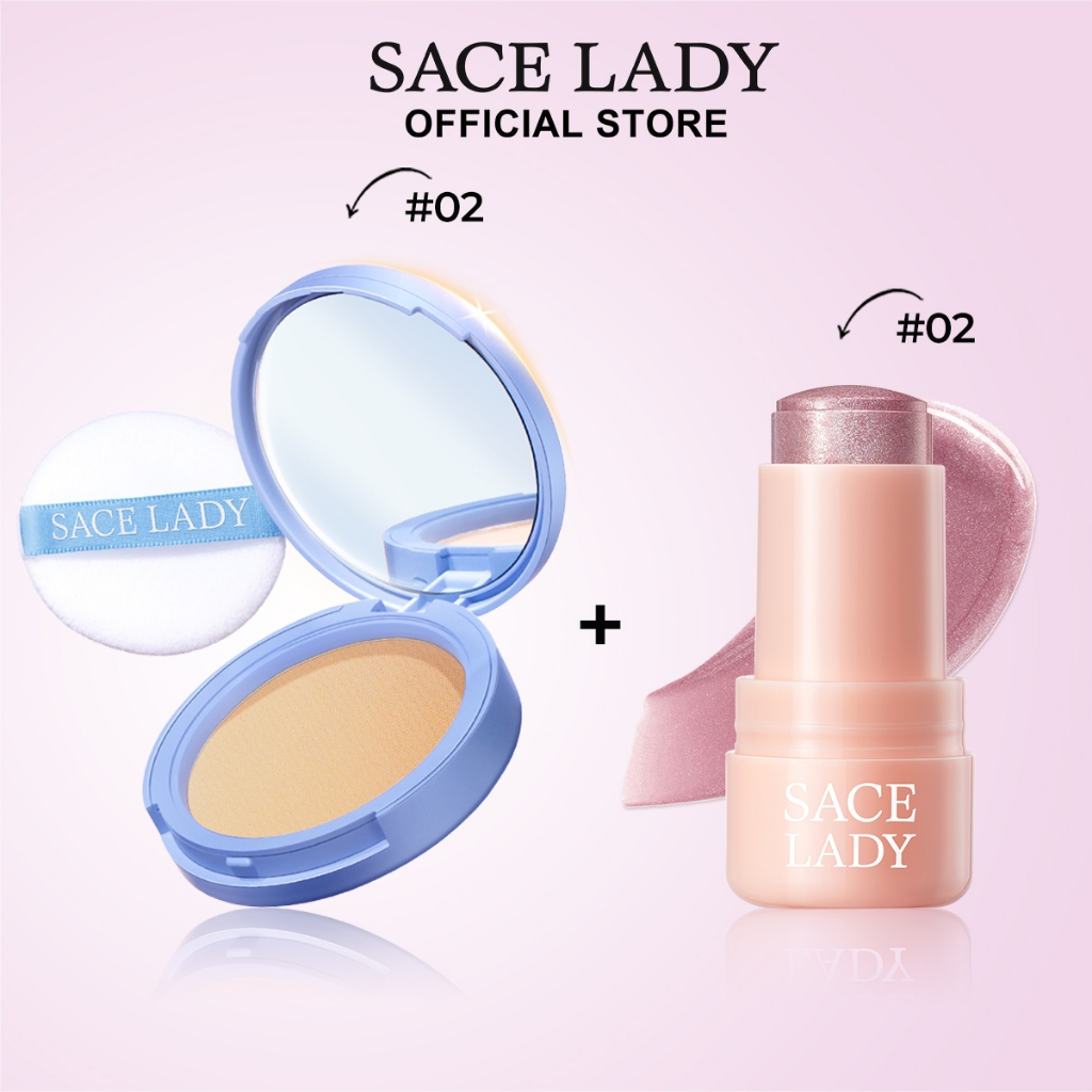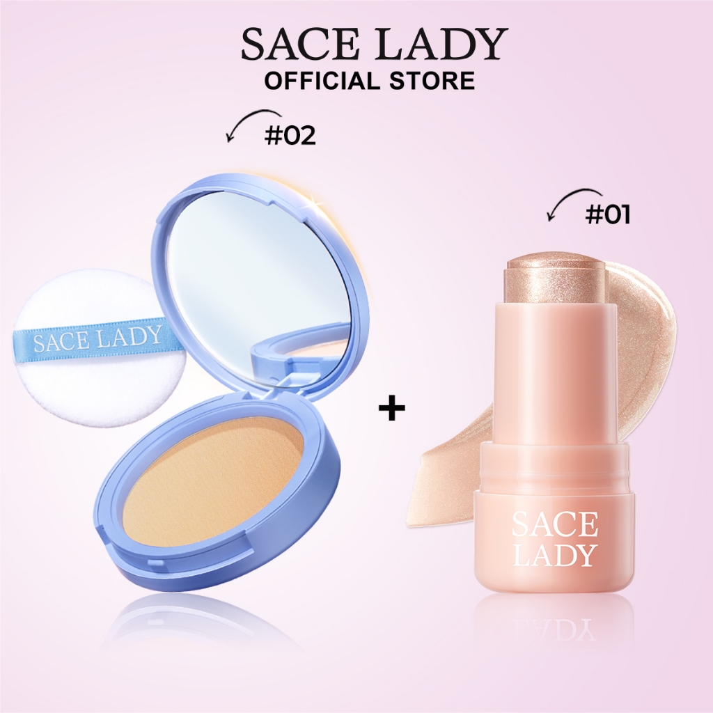SACE LADY Lasting Waterproof Face Powder Oil Control Powder+Watery Radiant Highlight Lasting Glowing Face Makeup Set