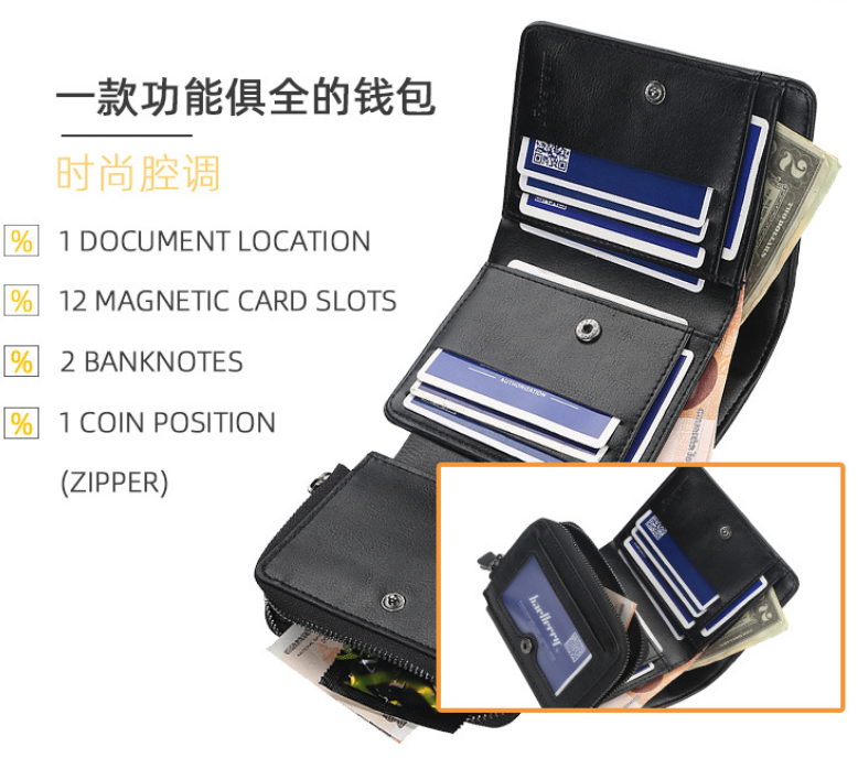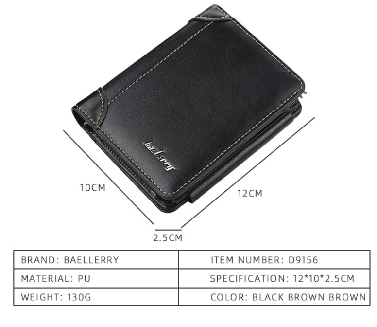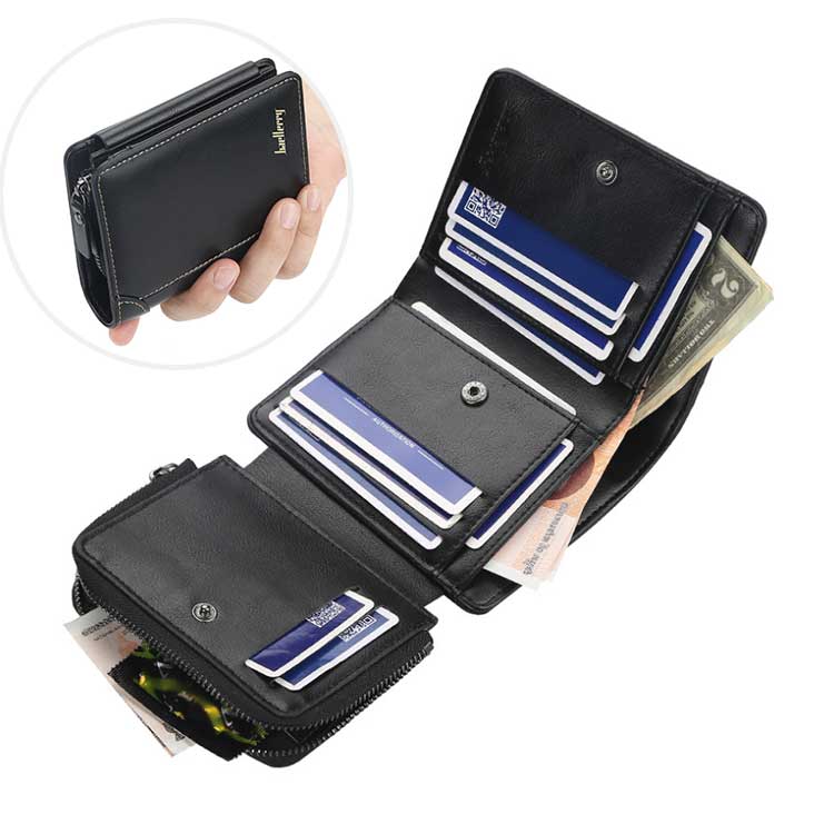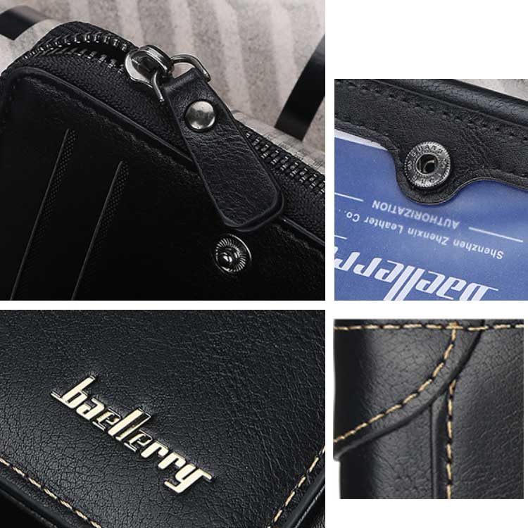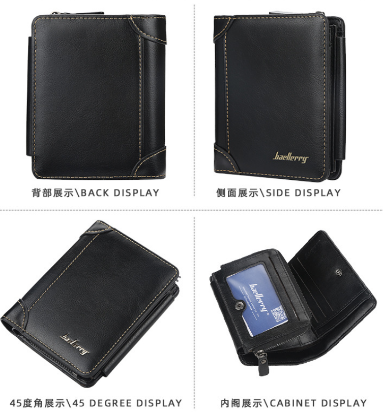Baellerry Men Short Wallet Three-fold Multi-card Card Holder with Zipper Buckle Coin Purse Leather Wallet Cash Bag