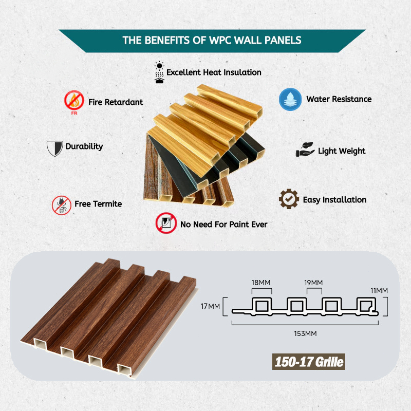 20PCS WPC 3D Fluted Wall Panel PVC Waterproof Wood Board Grille Design TV Background Home Decor