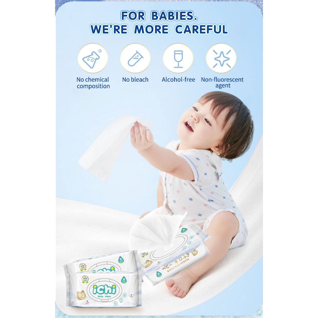 【DAVAO Same day delivery】ICHI BABY WIPES 80SHEETS Wet Wipes for Baby Newborn Kids