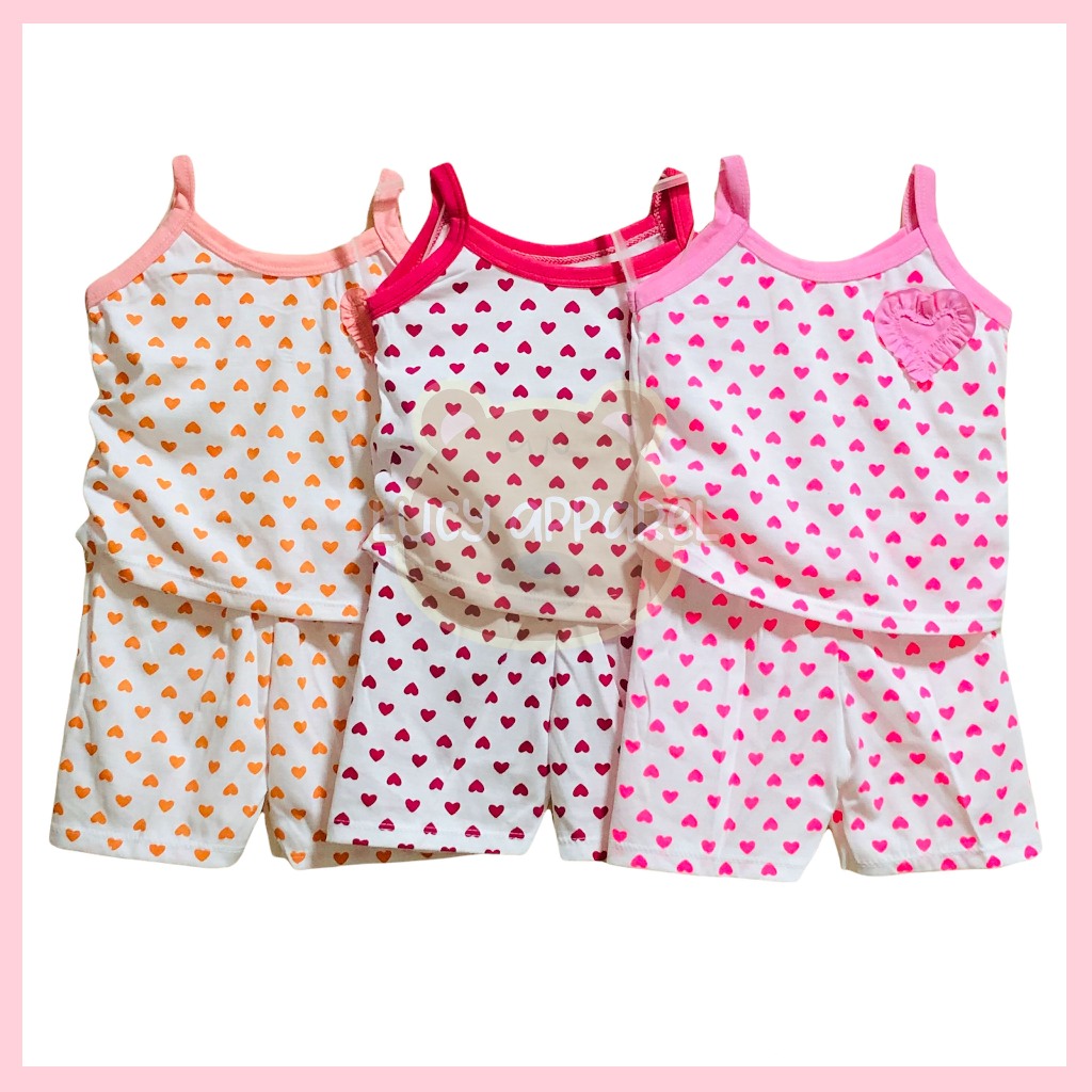3 PAIRS Infant Baby Heart Pambahay Terno for Girls 0-6 months