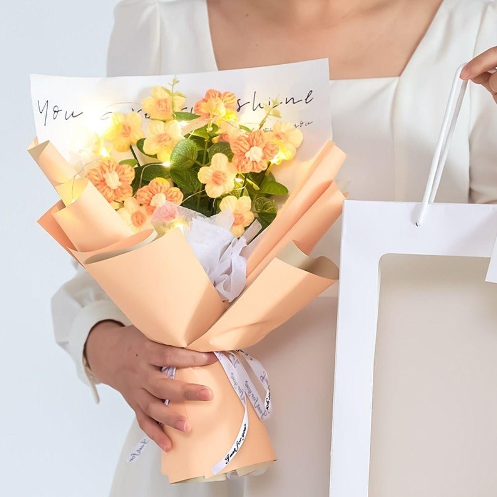 MAIAL Crochet Flowers Bouquet, Handcrafted LED Lamp String Graduation Flower Bouquet, Beautiful Handmade with Gift Bag Woven Wool Bouquet
