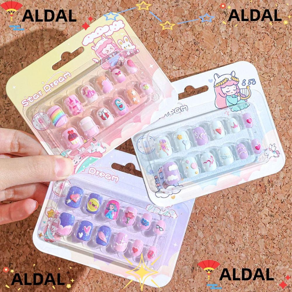 ALDAL Children Nail Patches, Square Cartoon Kids Fake Nails, Cute Full Cover Short Press on Nails for DIY
