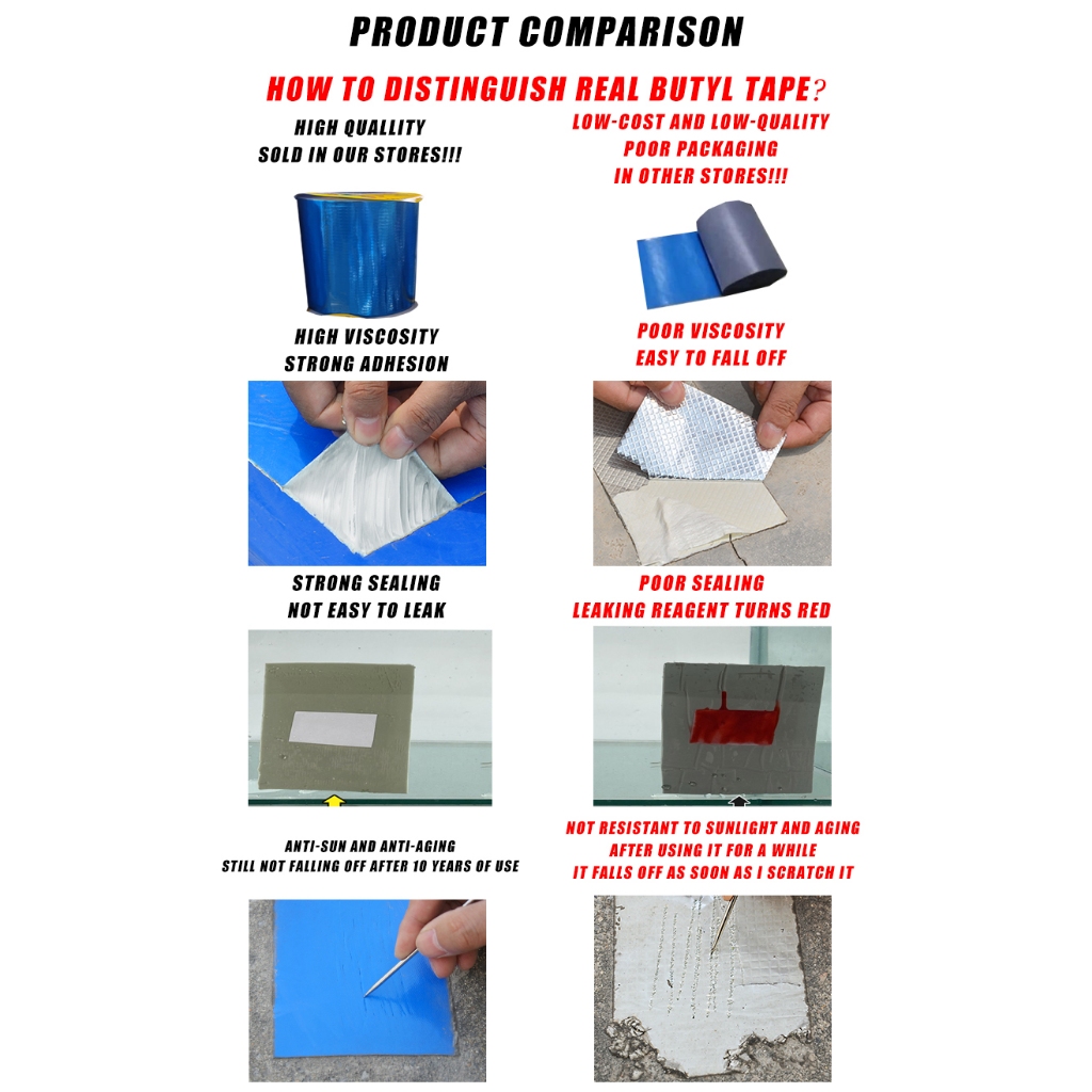 50 years without falling off✅ Blue red Tape Waterproof for Roof Super Strong Butyl Waterproof Tape