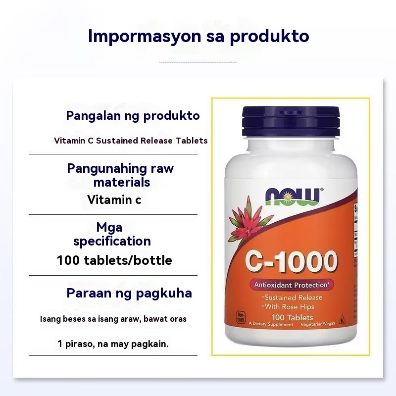 Now Vitamin C-1000【100% Original】Immune and Body Endurance C1000 Rosehips NOW 100 Tablets c1000 -TM