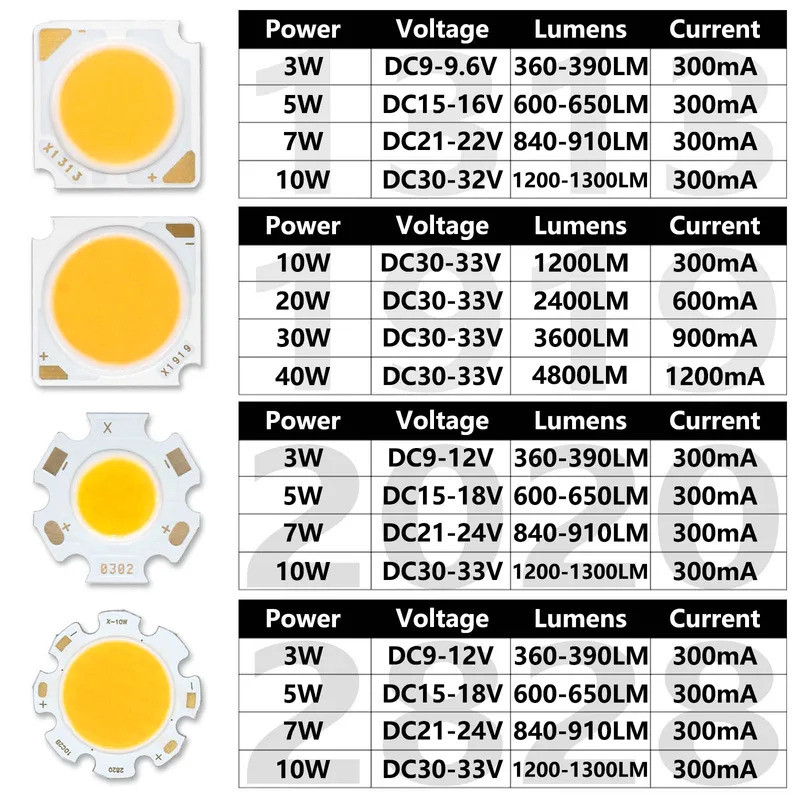 3W 5W 7W 10W 20W 30W 40W LED COB Source Bridgelux Chip 13mm 19mm 20mm 28mm DIY for LED Bulb Chip Spotlight Downlight Diode Lamps