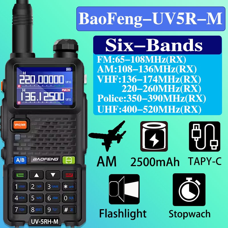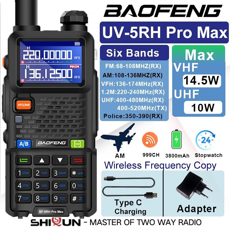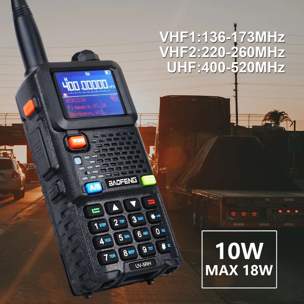 BaoFeng UV5RH-M Walkie Talkie 10W Portable Multi Band Two Way Radio Type-C Fast Charging FM/AM Radio