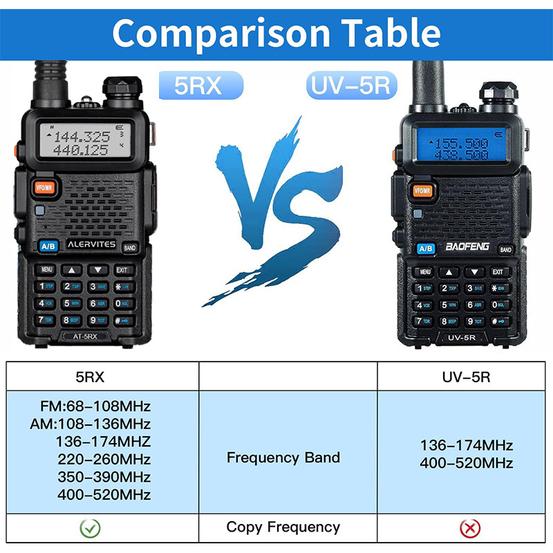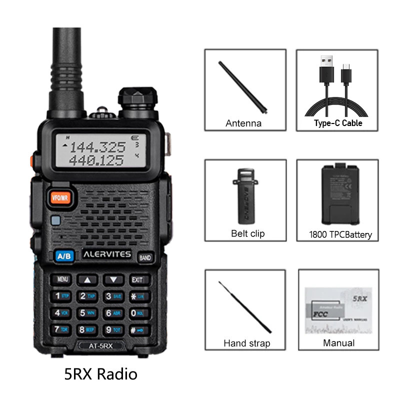Alervites AT-5RX Long Range 10KM Walkie Talkie FM AM Multi-Band U/VHF Two- Way Radio Upgrade UV-5R