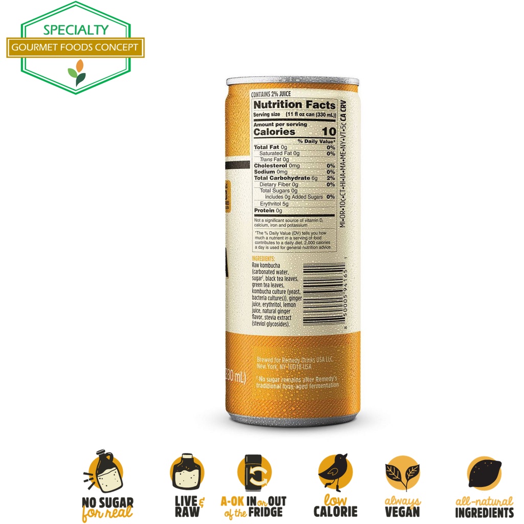 REMEDY KOMBUCHA GINGER LEMON - 250ML x 4s