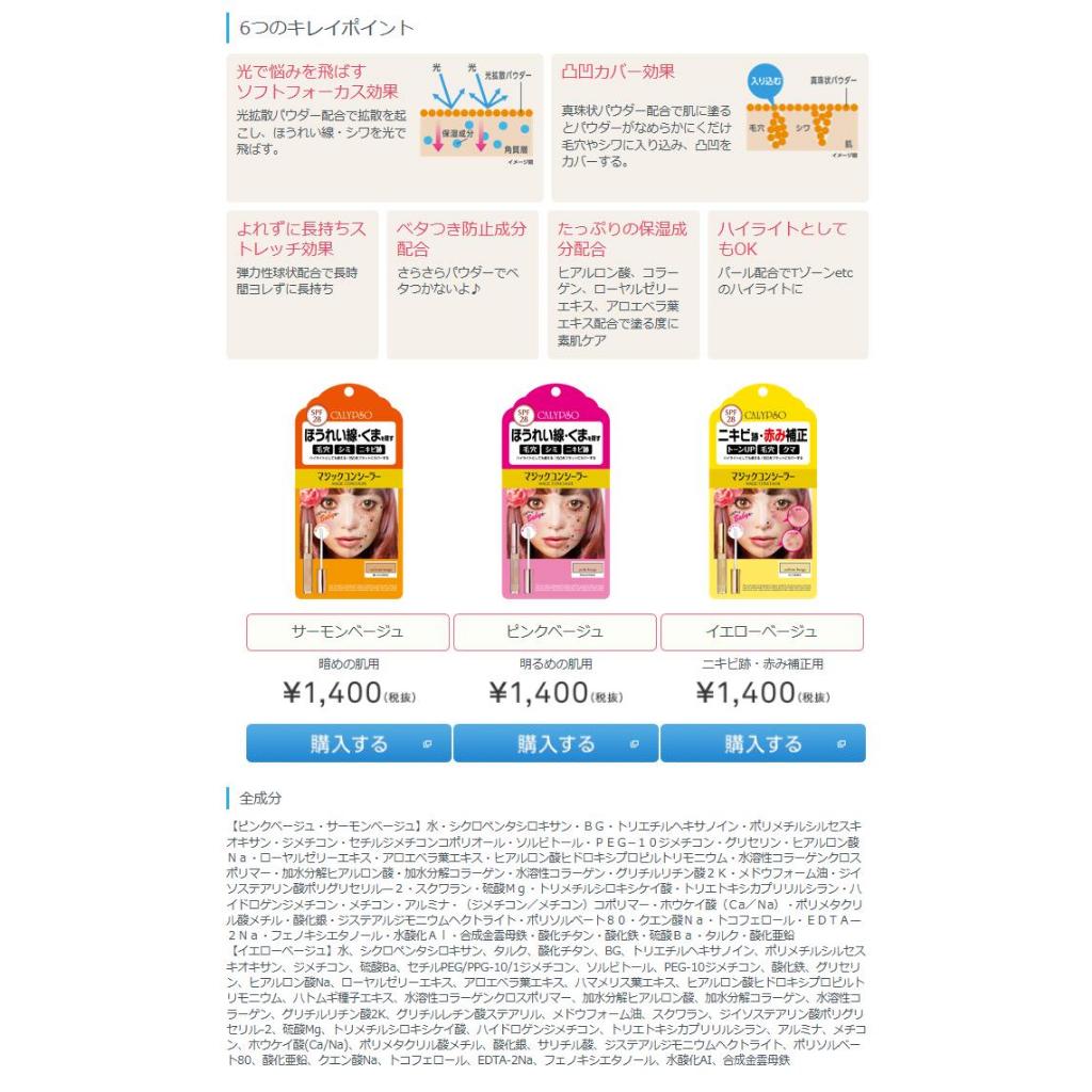 Calypso Magic Concealer SPF28 Pink Beige / Yellow Beige / Salmon Beige[Direct from Japan]