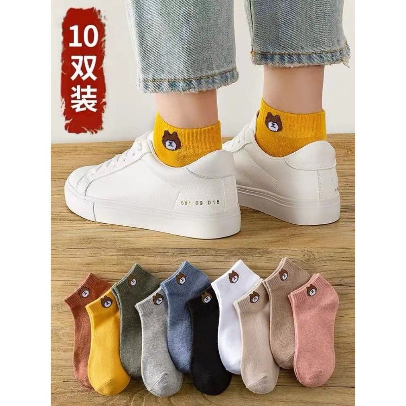 Printed Socks Korean Fashion Bear Ankle Socks. Couple Socks, Unisex Free Size Stretch 35-39