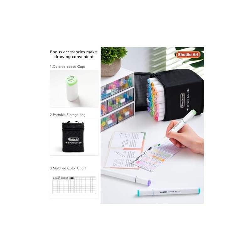 【Direct from Japan】Shuttle Art Illustration Marker 50 Colors Color Pen Set Marker Oil-based Blender Pen Included Thick and Thin Dual Ends Waterproof Quick-drying Fading-resistant Carrying Case Planner Coloring Book Design Comic Manga Sketch Doodle Drawing