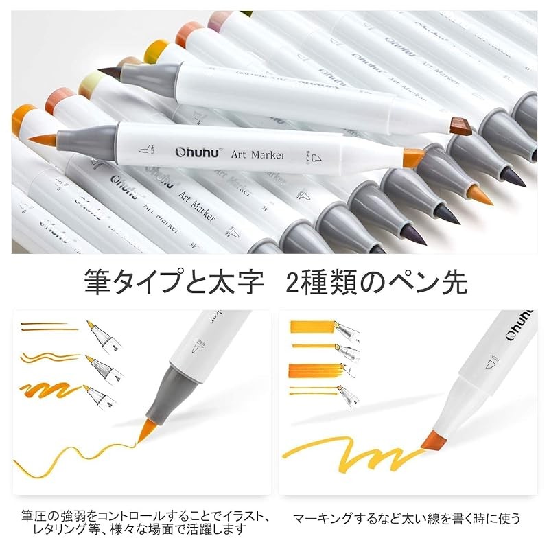 Ohuhu Marker Pen Brush Type 24 Colors Skin Tone Series Professional Illustration Brush/Chisel Tip Skin Color Alcohol Marker with Blender Pen Honolulu Series