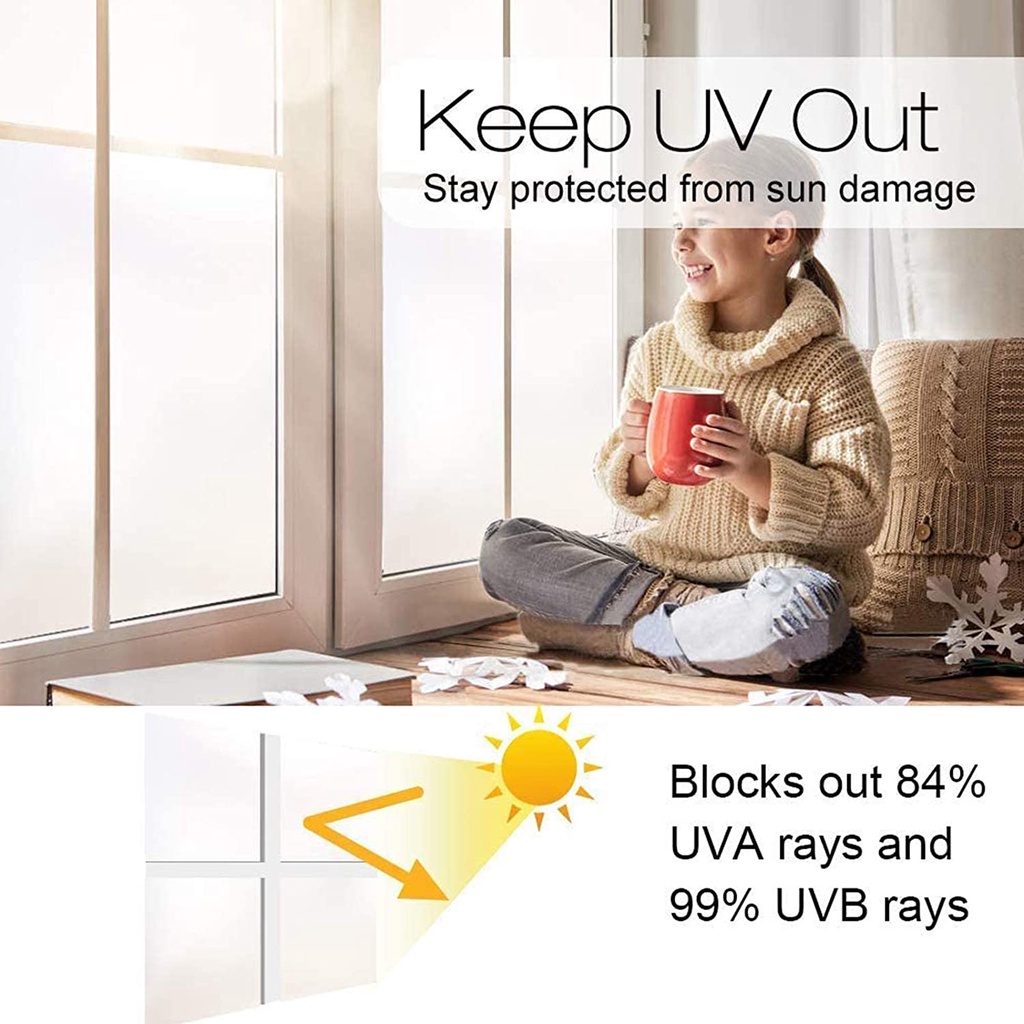 Frosted Window Privacy Film Non Adhesive UV Blocking Removable Glass Covering