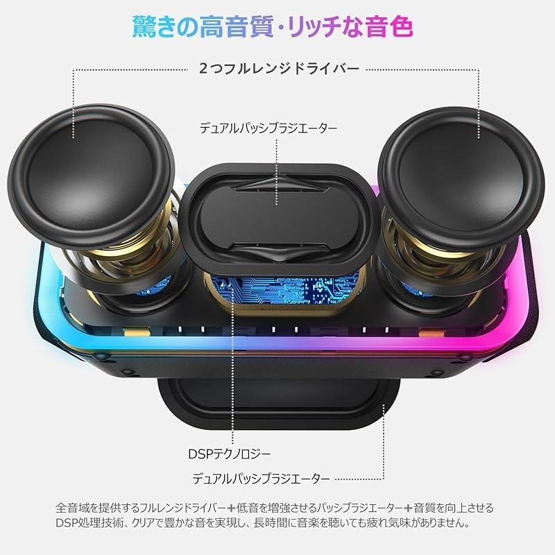 [import from Japan] DOSS SoundBox Pro+ Bluetooth Speaker 24W Deep Bass Wireless Portable Small Bluetooth Speaker【15-Hour Playtime/Wireless Stereo Pairing/Lighting Feature/IPX6 Waterproof/Built-in Mic/Aux-in/TF Card Supported/Perfect for Bathrooms and Outd