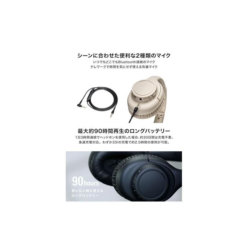 [import from Japan] Audio-Technica ATH-S300BT(E) Wireless Headphones with Noise Cancelling, Bluetooth, Closed-back, Built-in Wireless Microphone, and Microphone-equipped Cable Included [Up to 90 hours of playback, Quick Charge, AAC support, Ambient Sound