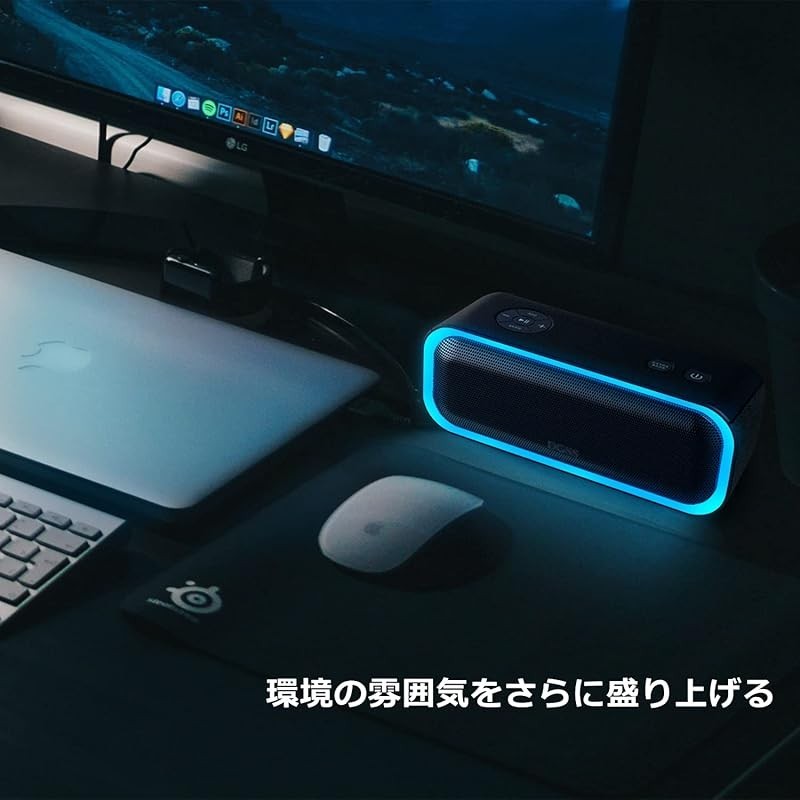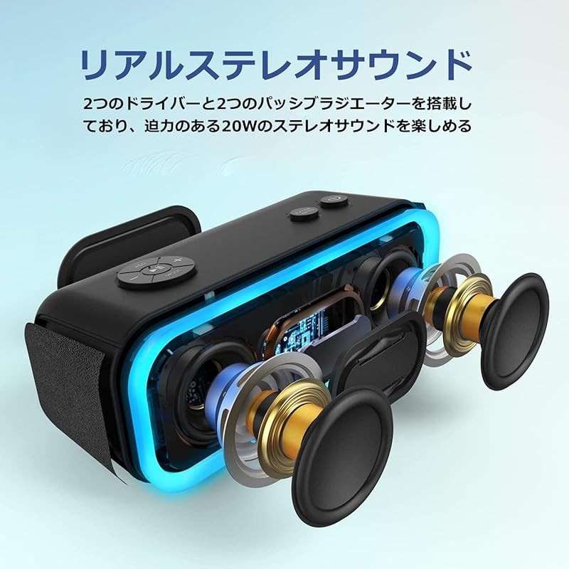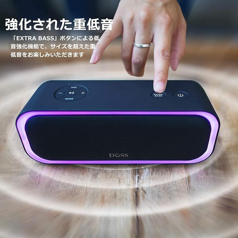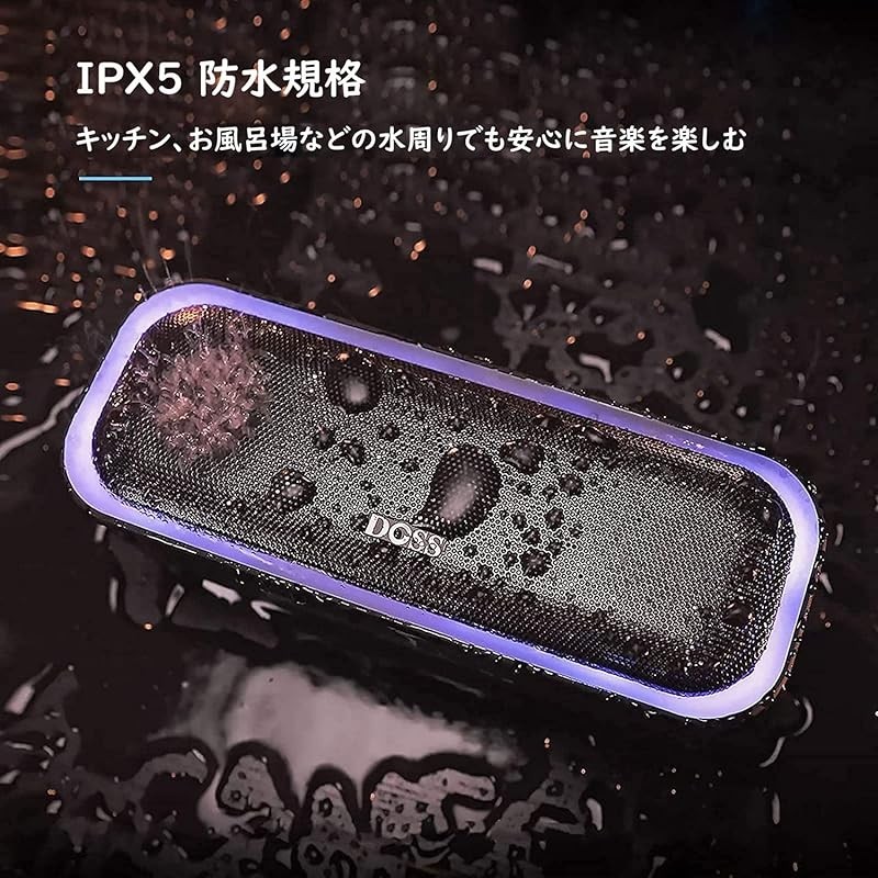 [Direct from Japan] DOSS SoundBox Pro 20W Wireless Bluetooth Speaker with Enhanced Bass - Portable, Mini, Waterproof, 20 Hours Playtime, LED Illumination, IPX6, Wireless Stereo, Aux/TF Card Compatible for Bathing and Outdoor Use