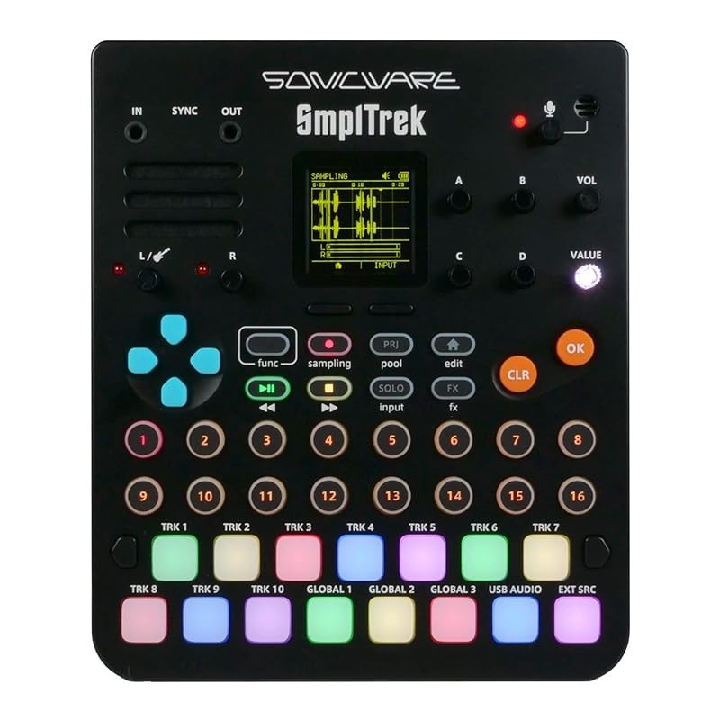 [import from Japan] SONICWARE SmplTrek [Portable Production Sampler] with touch-sensitive full-color LED pads x 15, built-in microphone and speaker, battery-powered, USB audio interface.