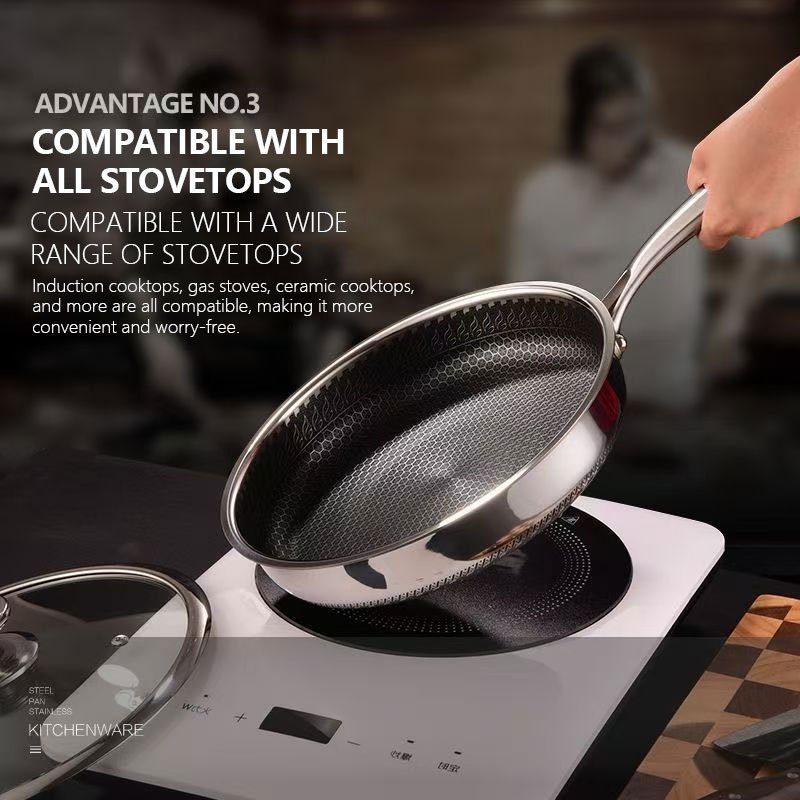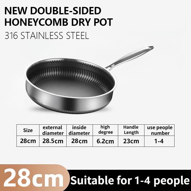 COOKER KING 316 Stainless Steel Frying Pan Double Sided Honeycomb Pan Suitable For All Stoves