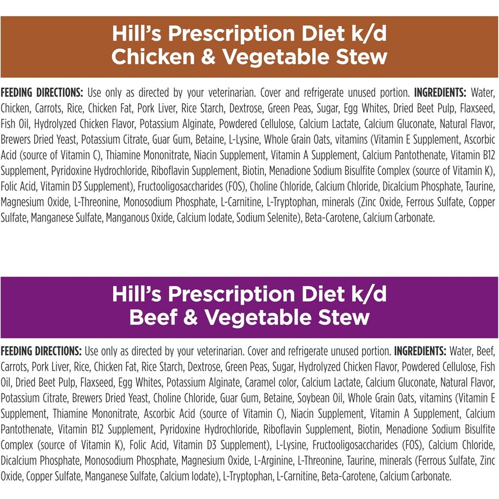 Hill's Prescription Diet k/d Kidney Care, i/d Low Fat Digestive Care Rice Chicken & Vegetable Stew Wet Dog Food