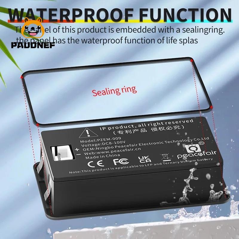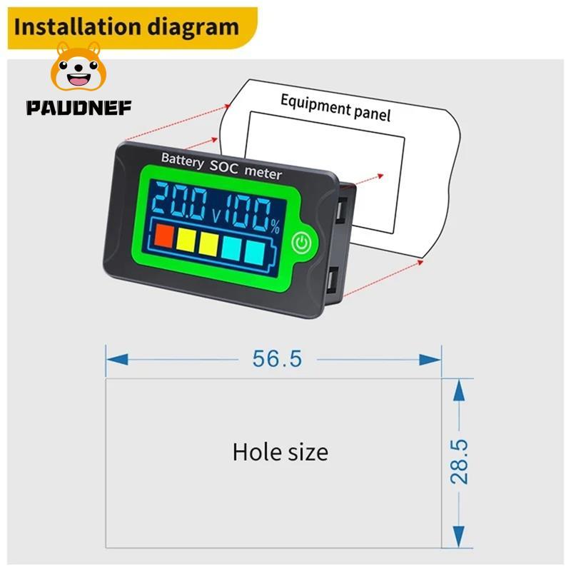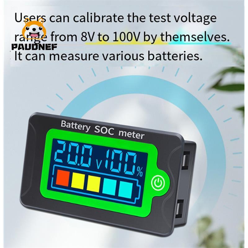 【paudnef】Waterproof Digital LCD Voltmeter Battery Capacity Tester Voltage Indicator DC8-100V 12V 24V 36V 48V 72V