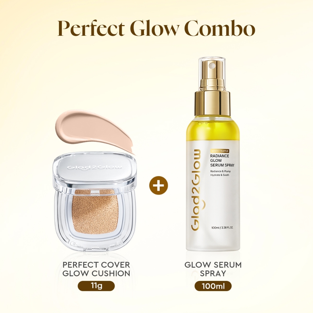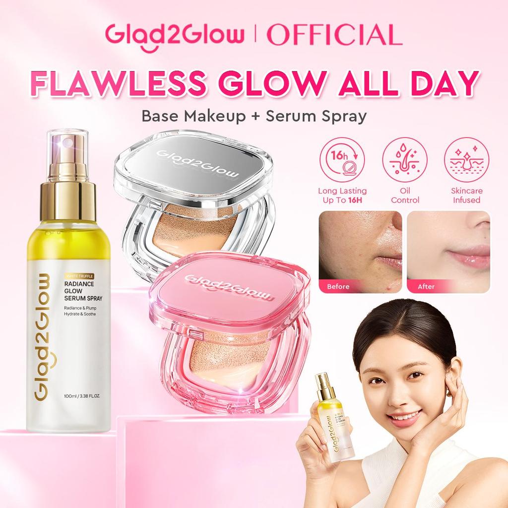 Glad2Glow Cushion&Serum Spray 2PCS Makeup Set Perfect Cover Cushion + Primer Serum Spray for Makeup