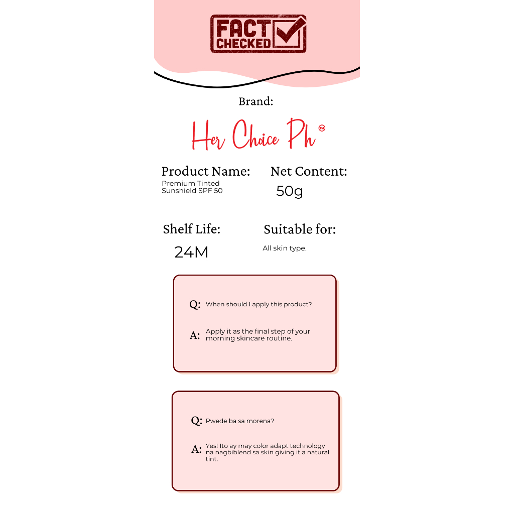 PREMIUM TINTED SUNSHIELD SPF50 50g - Her Choice Ph FDA NOTIFIED