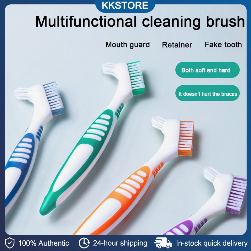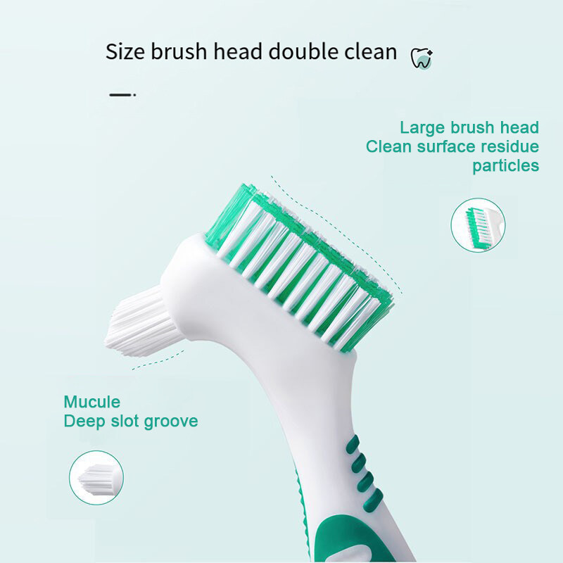 【COD】 Double-sided Cleaning Toothbrush Double-sided Denture Cleaning Toothbrush with Handle