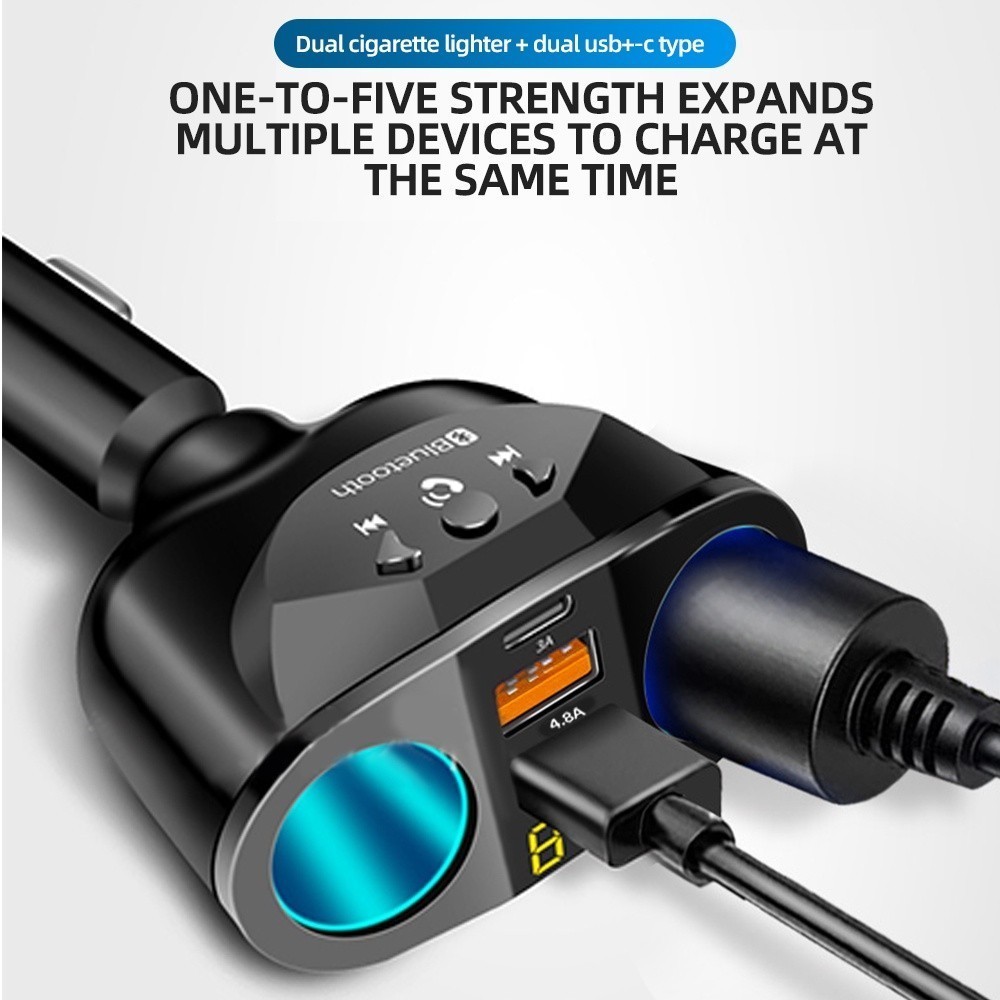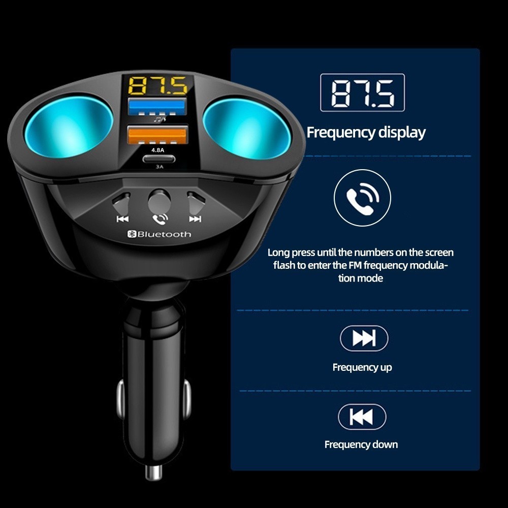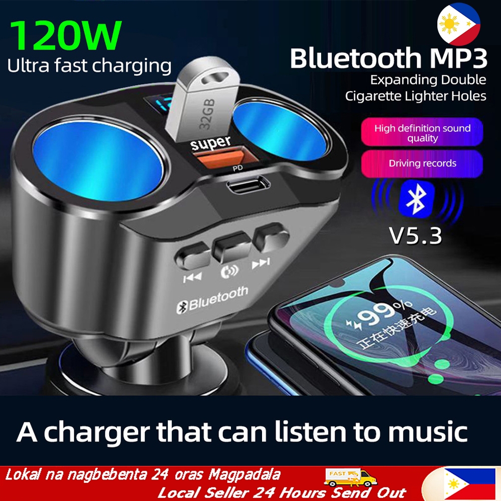 (PHI Stock) Car Charger 3 IN 1 car charger 4.8A dual USB interface fast charging Bluetooth receiver car U disk supplies