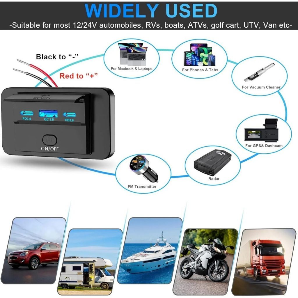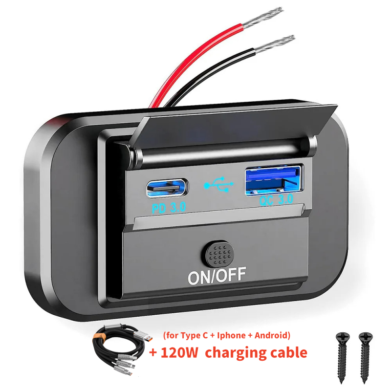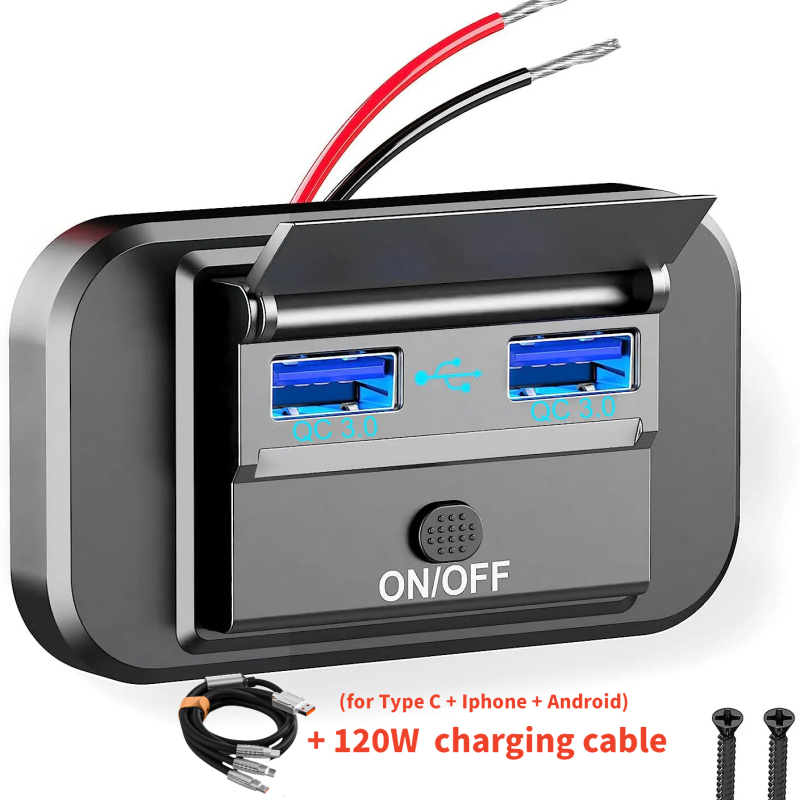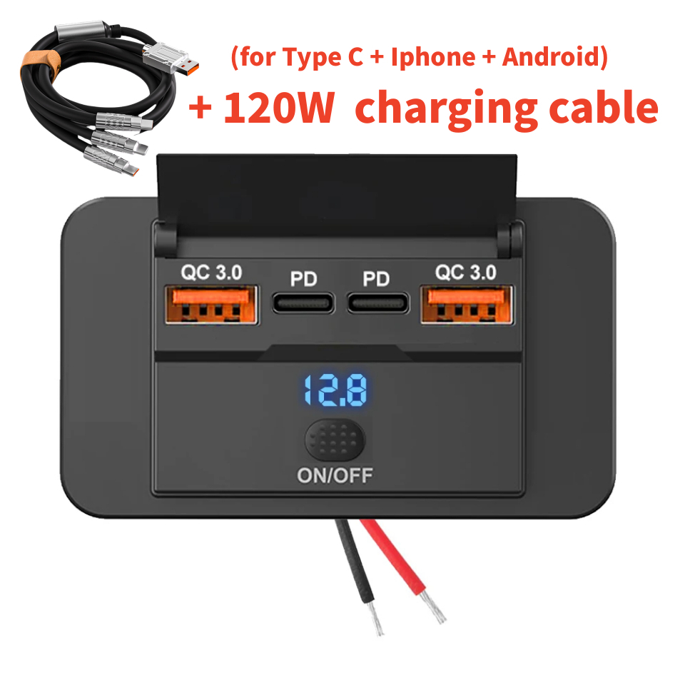 4-Ports 12/24V USB C Outlet Panel Wall Mount Car Charger Socket with Button Switch Waterproof car Accessories for Bus RV Truck