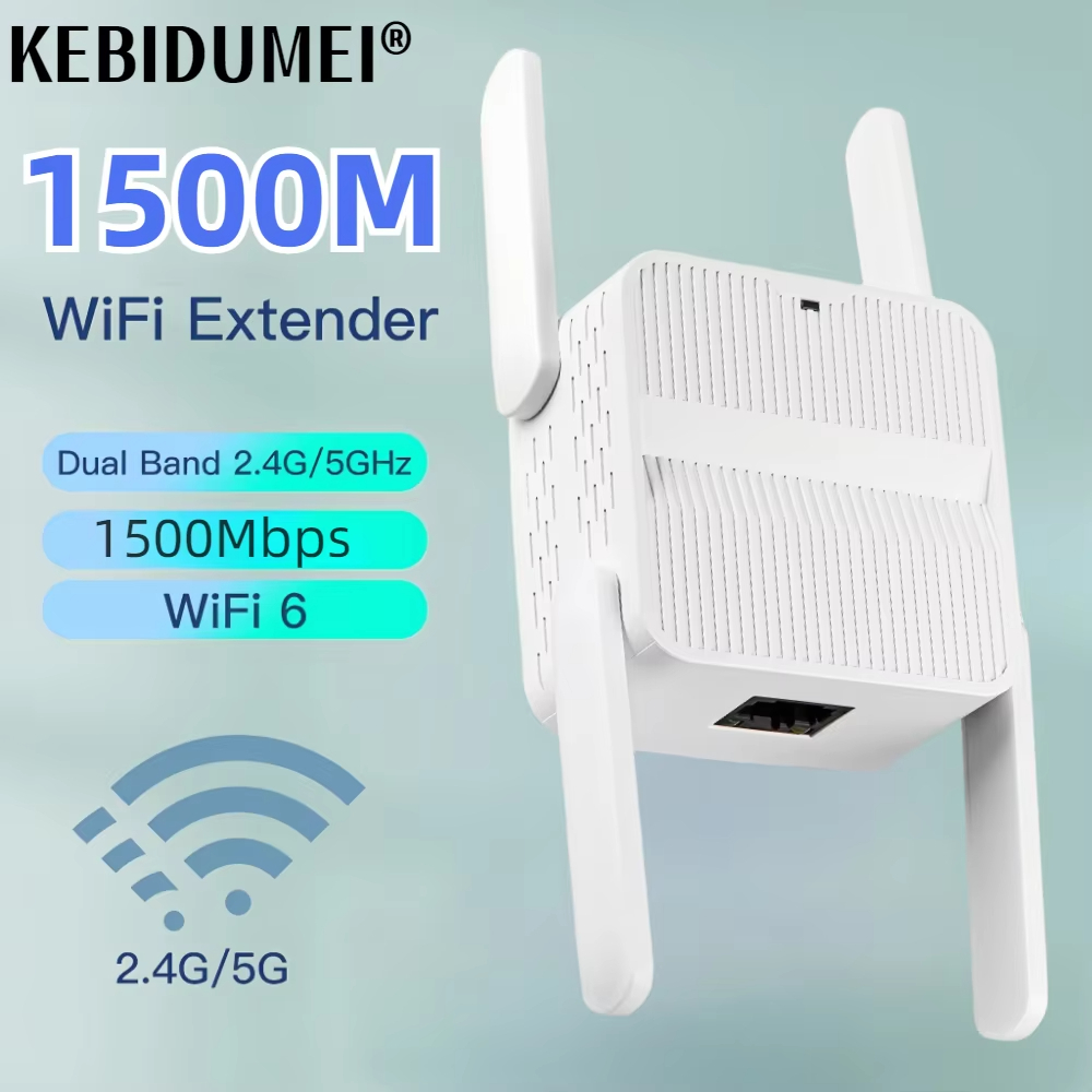 (PHI Stock) WiFi 6 AX1500 WiFi Repeater Dual Band 2.4G&5GHz 1500Mbps Wireless Wi-Fi Extender Router 4*2dbi 802.11AX Antenna Gigabit Network Amplifier