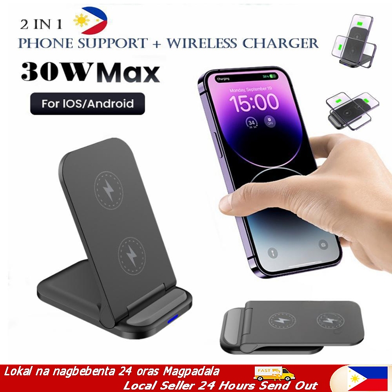 (PHI Stock) 30W Wireless Fast Charging Dock Station For Phone 16 15 14 13 12 11 Pro X XS Max XR 8 Samsung S22 S21