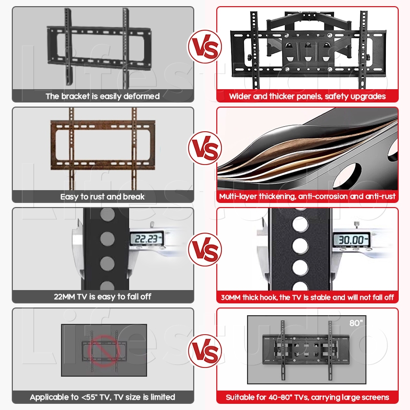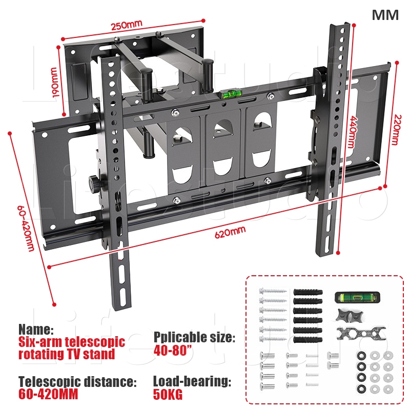 Life TV Bracket 32-75'' TV Wall Mount Bracket 6 Arms Stand Adjustable pitch 15° Upgraded thickened