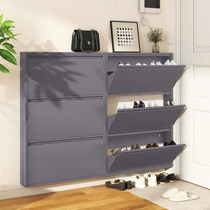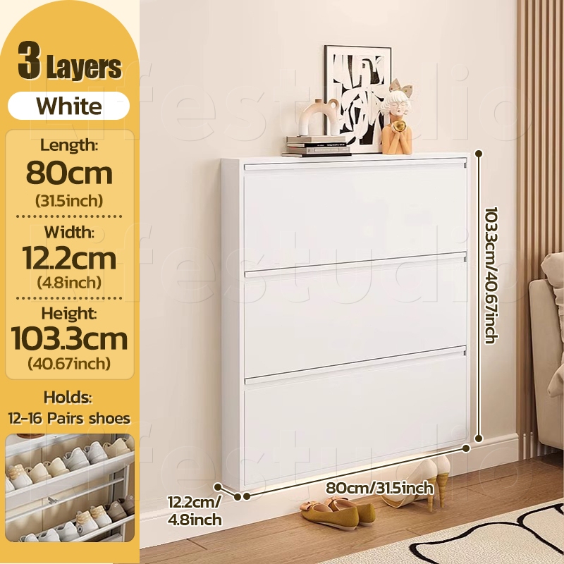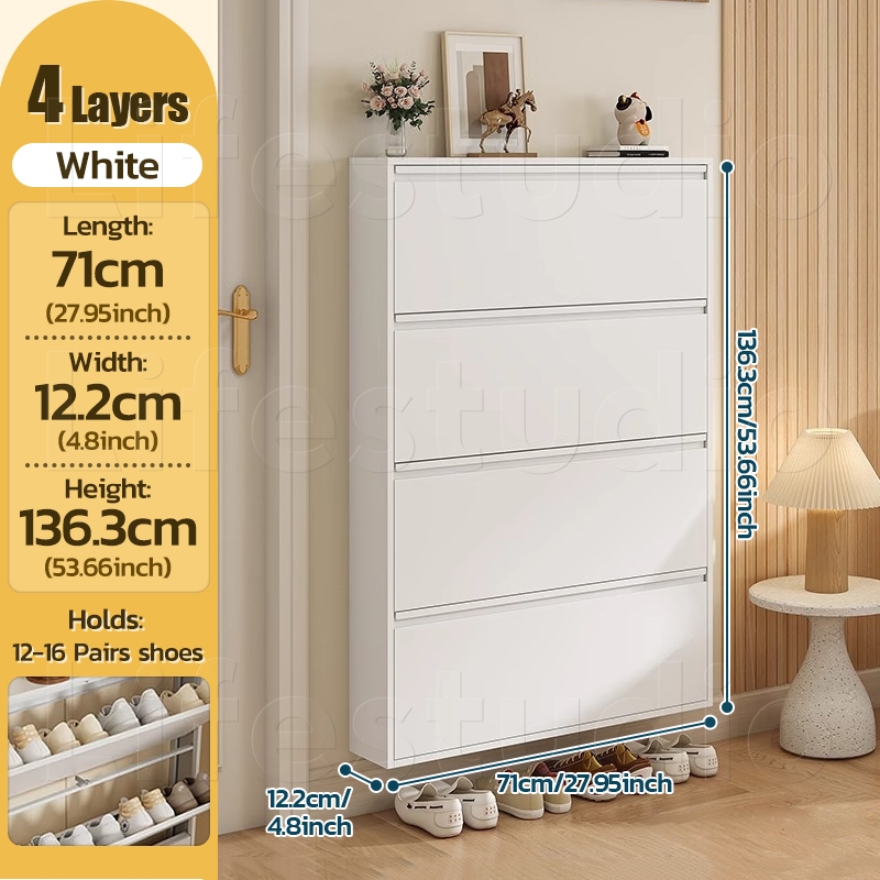 Life Metal Shoe Cabinet with Multilayer Flip Drawers Entrance Shoe Cabinet Storage for Entryway
