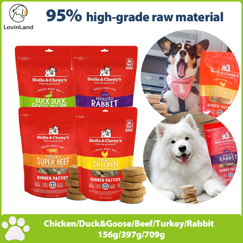 Stella & Chewy's Freeze Dried Raw Dog Food Dinner Patties Raw bone and meat cake High Protein Grain Free Puppy Adult Dog Food Chicken Duck Beef Recipe 156g 397g 709g