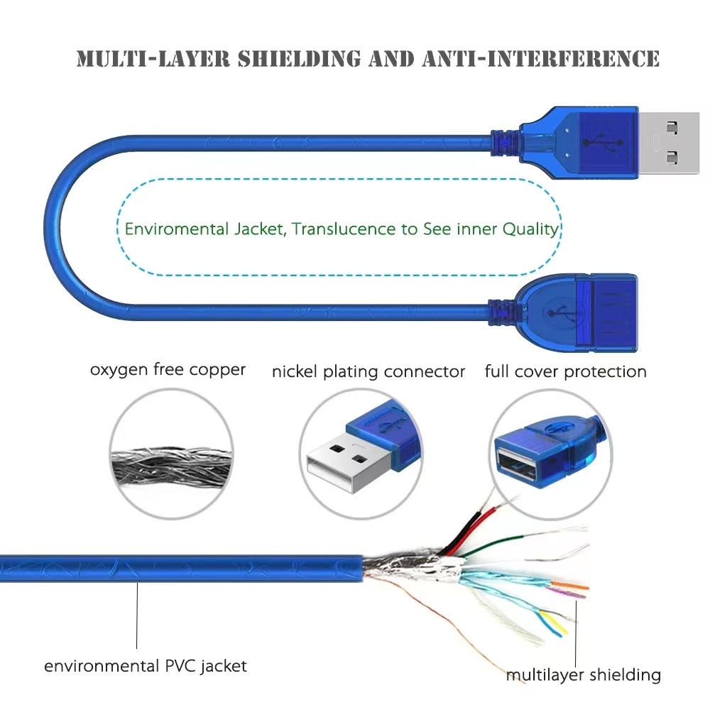 USB 2.0 Male to Female USB Cable 1.5m,3m,5m, Extender Cord Wire Super Speed Data extension cable