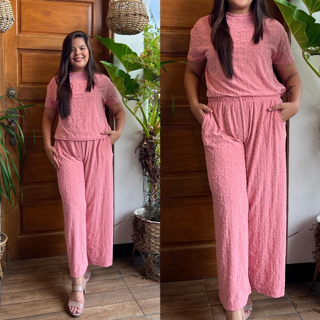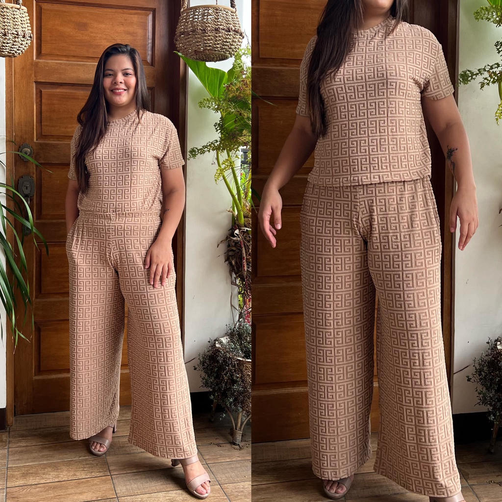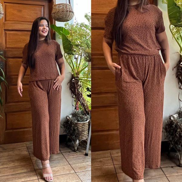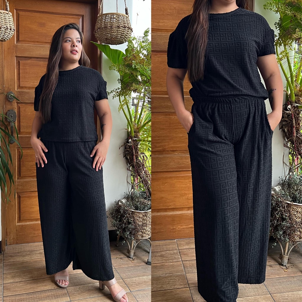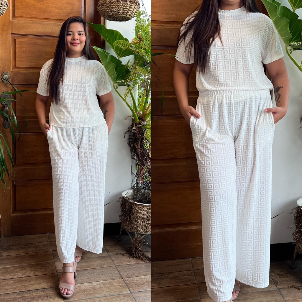 MAIKA TERNO PLUS SIZE YAYAMANIN EMBOSSED TOP AND PANTS W/ 2 SIDE POCKET COORDS COORDINATE
