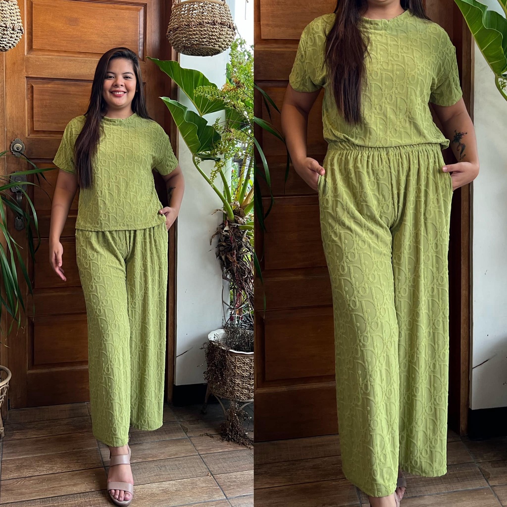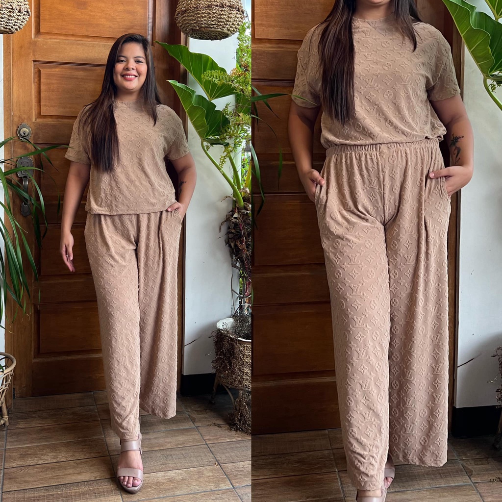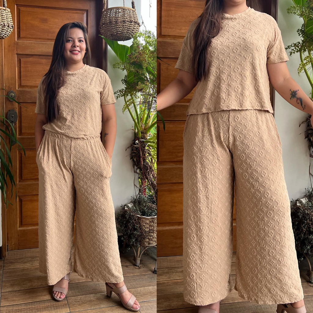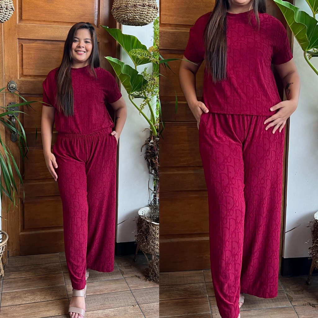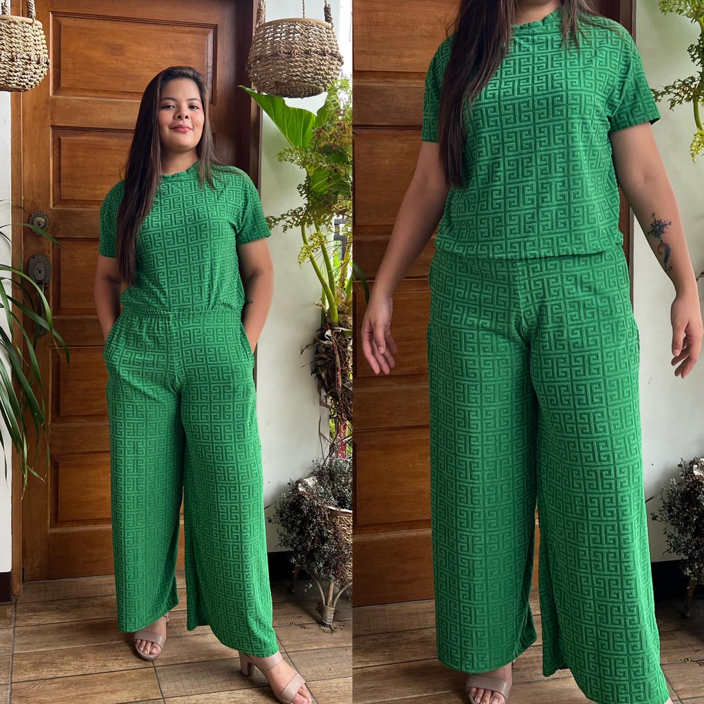 MAIKA TERNO PLUS SIZE YAYAMANIN EMBOSSED TOP AND PANTS W/ 2 SIDE POCKET COORDS COORDINATE