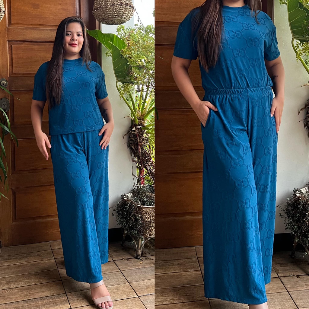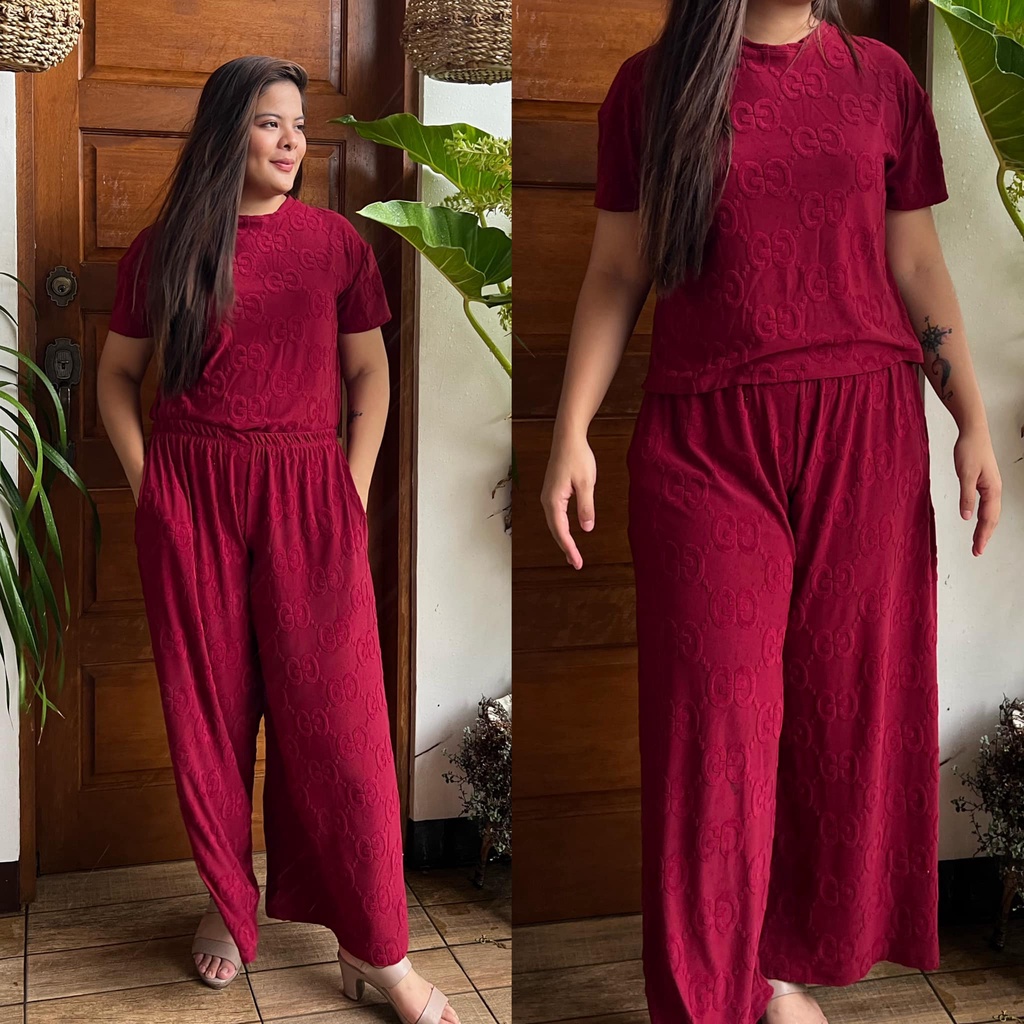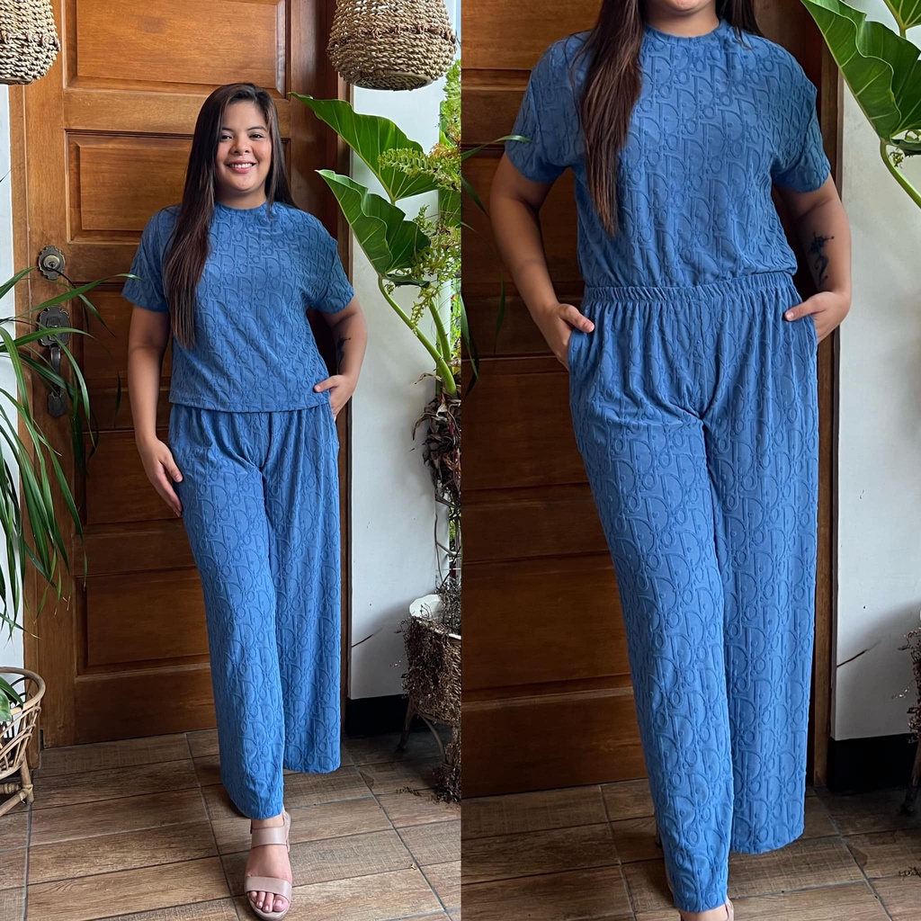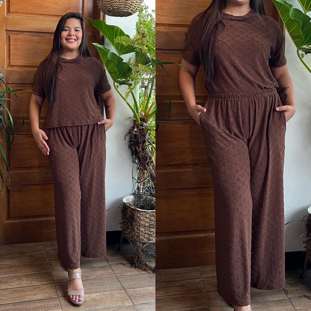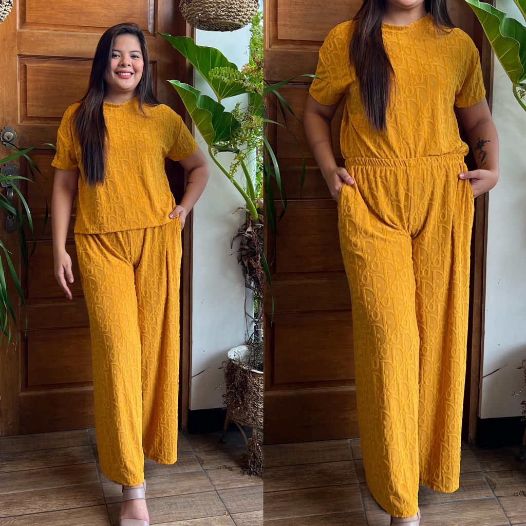 MAIKA TERNO PLUS SIZE YAYAMANIN EMBOSSED TOP AND PANTS W/ 2 SIDE POCKET COORDS COORDINATE