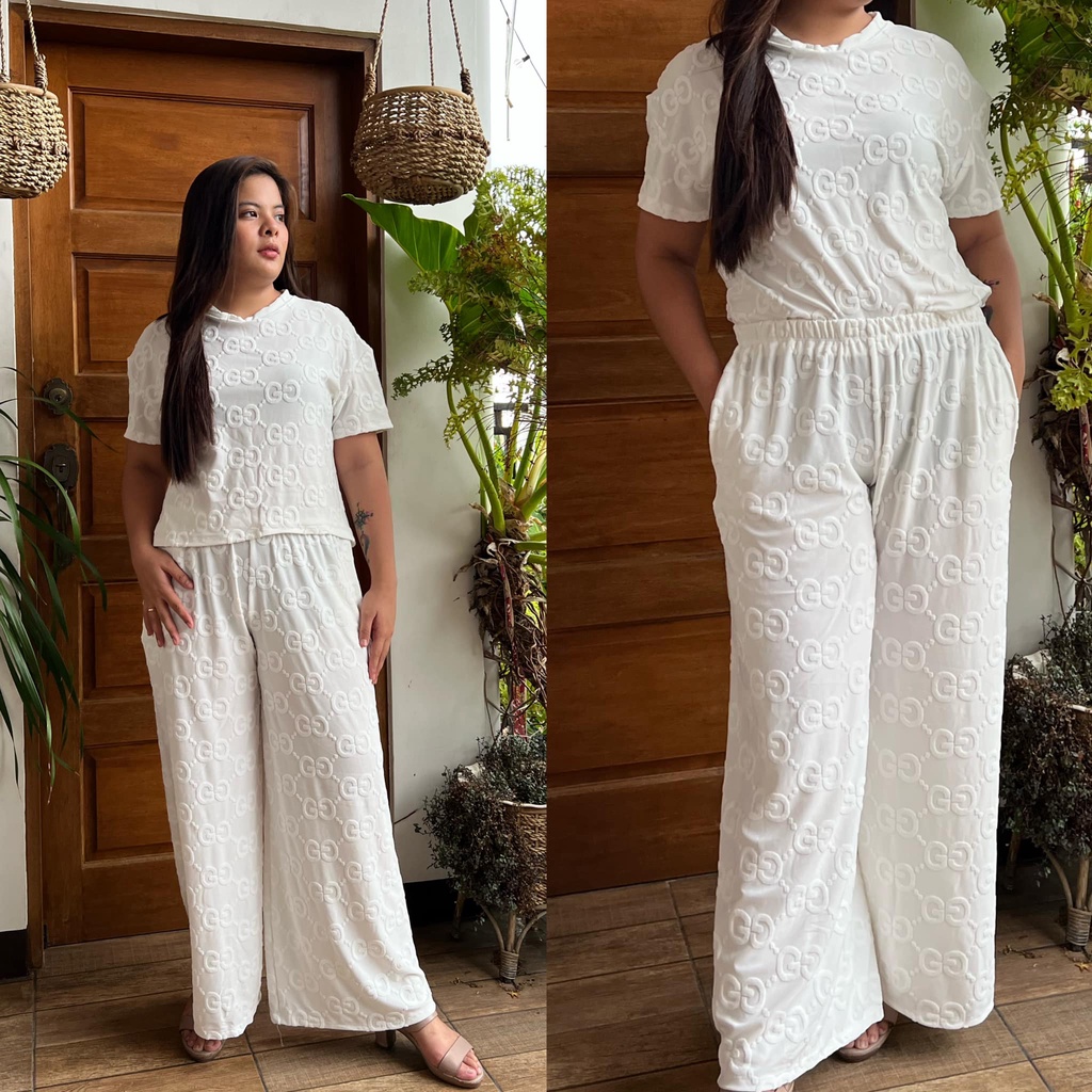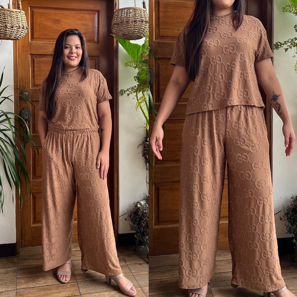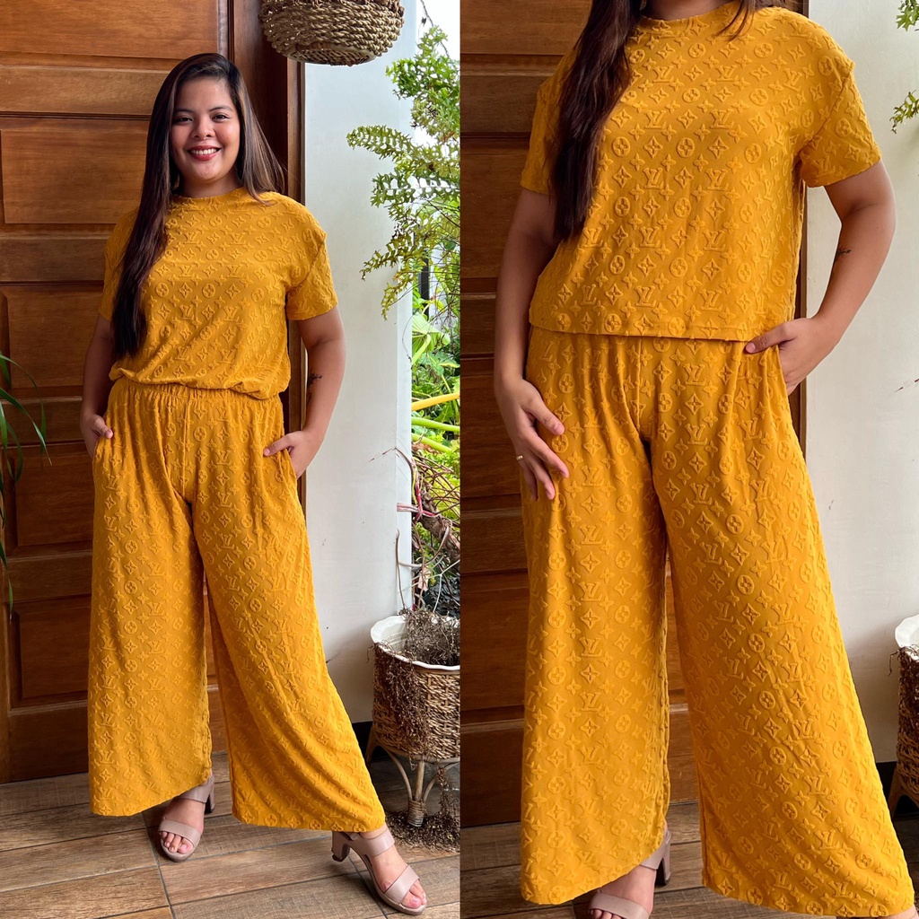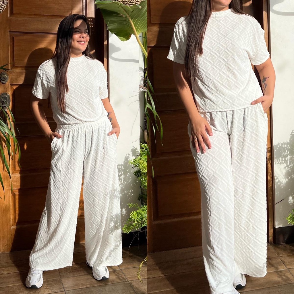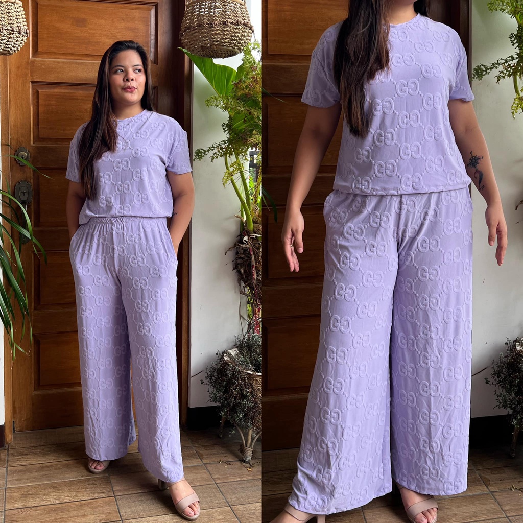 MAIKA TERNO PLUS SIZE YAYAMANIN EMBOSSED TOP AND PANTS W/ 2 SIDE POCKET COORDS COORDINATE