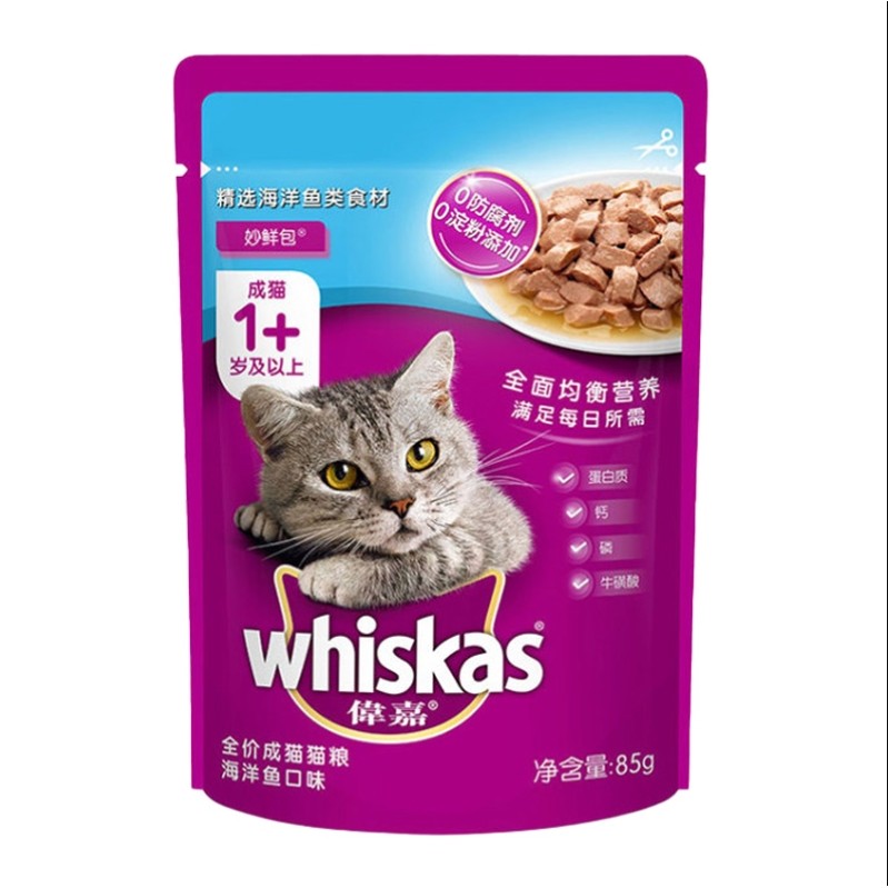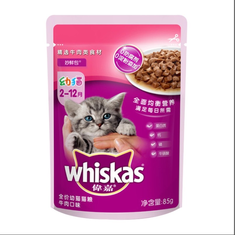 Whiskas Wet Food Pack Canned Cat Snacks For Kittens and Adult Cats Beef and Tuna Flavor Cat Wet food 85gx12 Packs