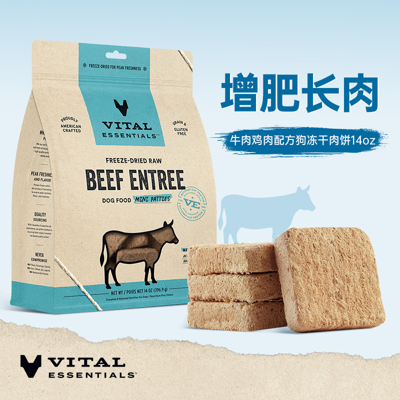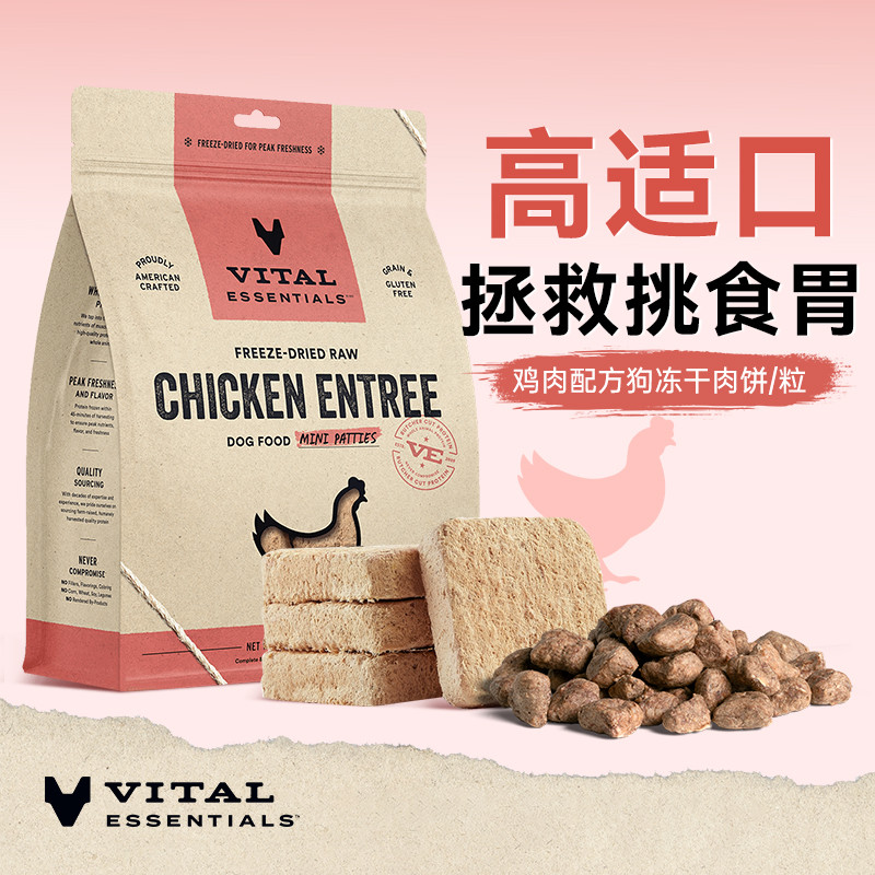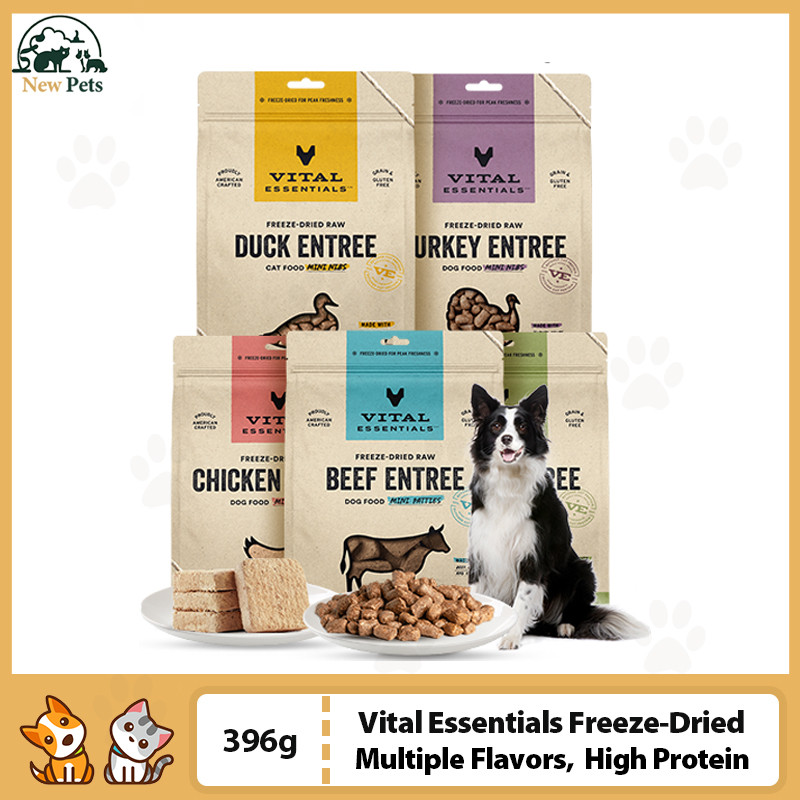 Vital Essentials Freeze Dried Dog Food Raw Beef Chicken Duck Rabbit Turkey Mini Patties / Mini Nibs
